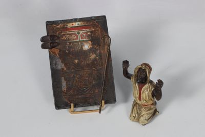 Bronze de Vienne polychrome, BEDOIN en prières, tête mobile.…