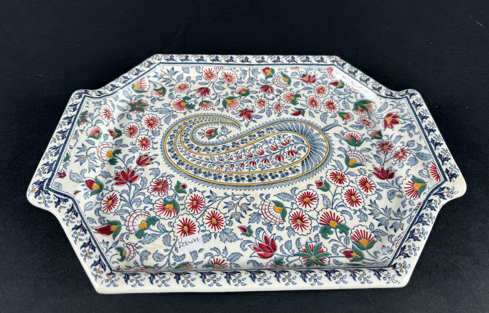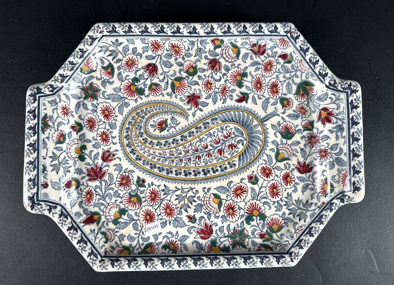 Gien plat « cachemire » à décor imprimé d'un boteh 33x24 cm un éclat au revers d'un angle