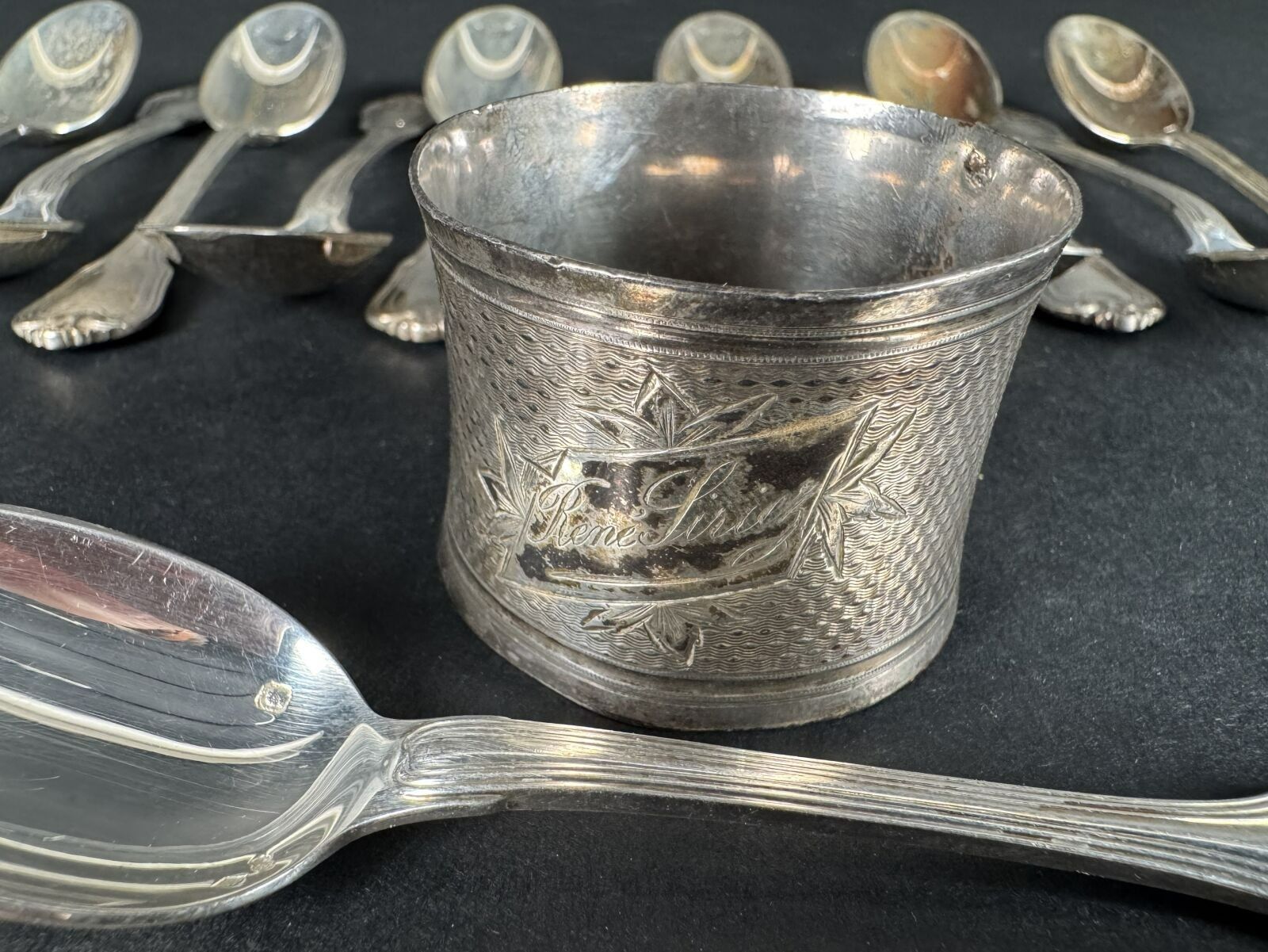 On y joint un rond de serviette en argent Minerve 45g