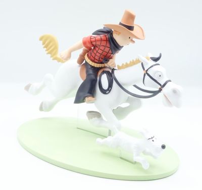 Hergé = MOULINSART RESINE : Tintin cow -boy à cheval (42178)…