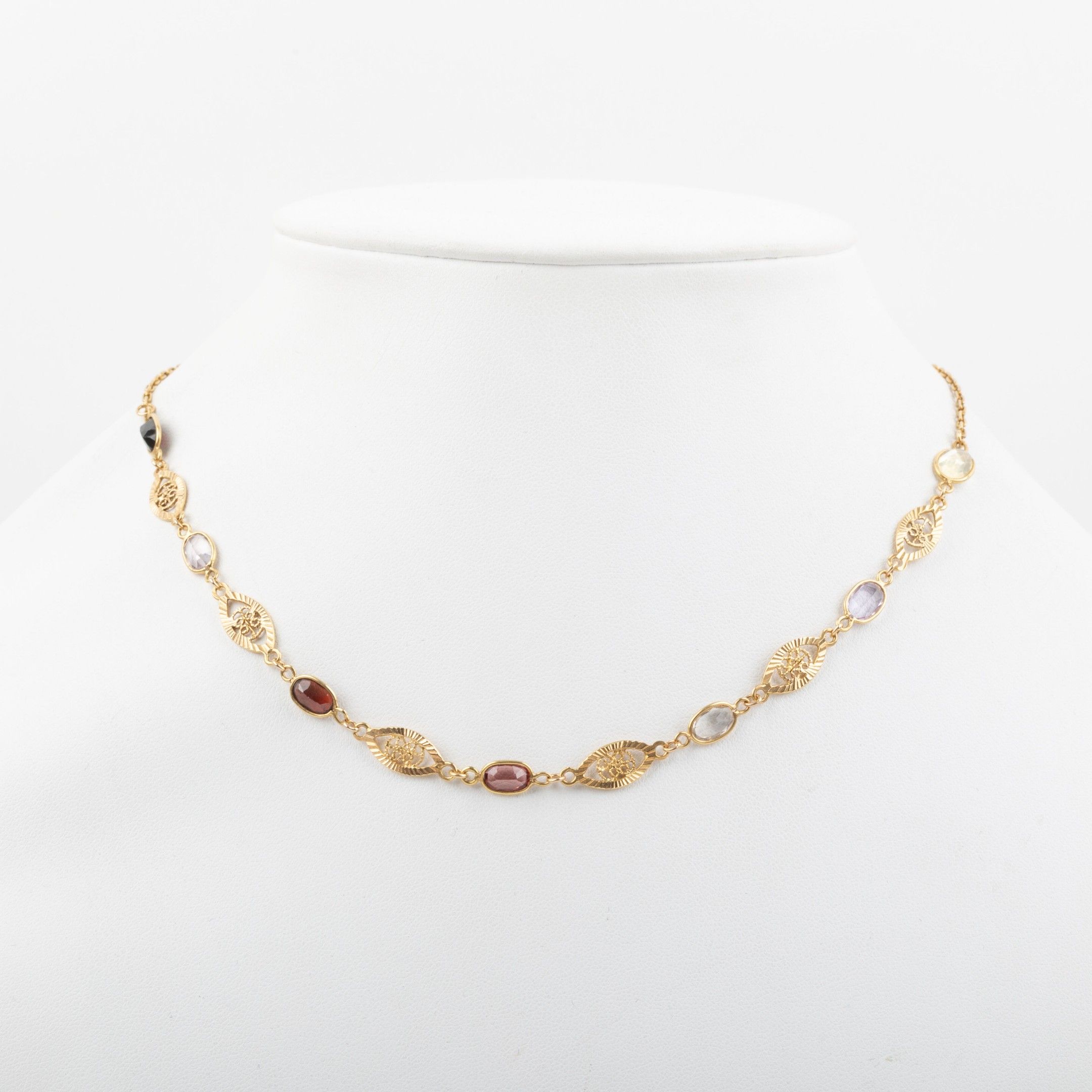 Collier ras de cou, "tutti frutti" pierres de couleurs, or et or filigrané 14K Poids brut : 7.1 g - L: 40 cm