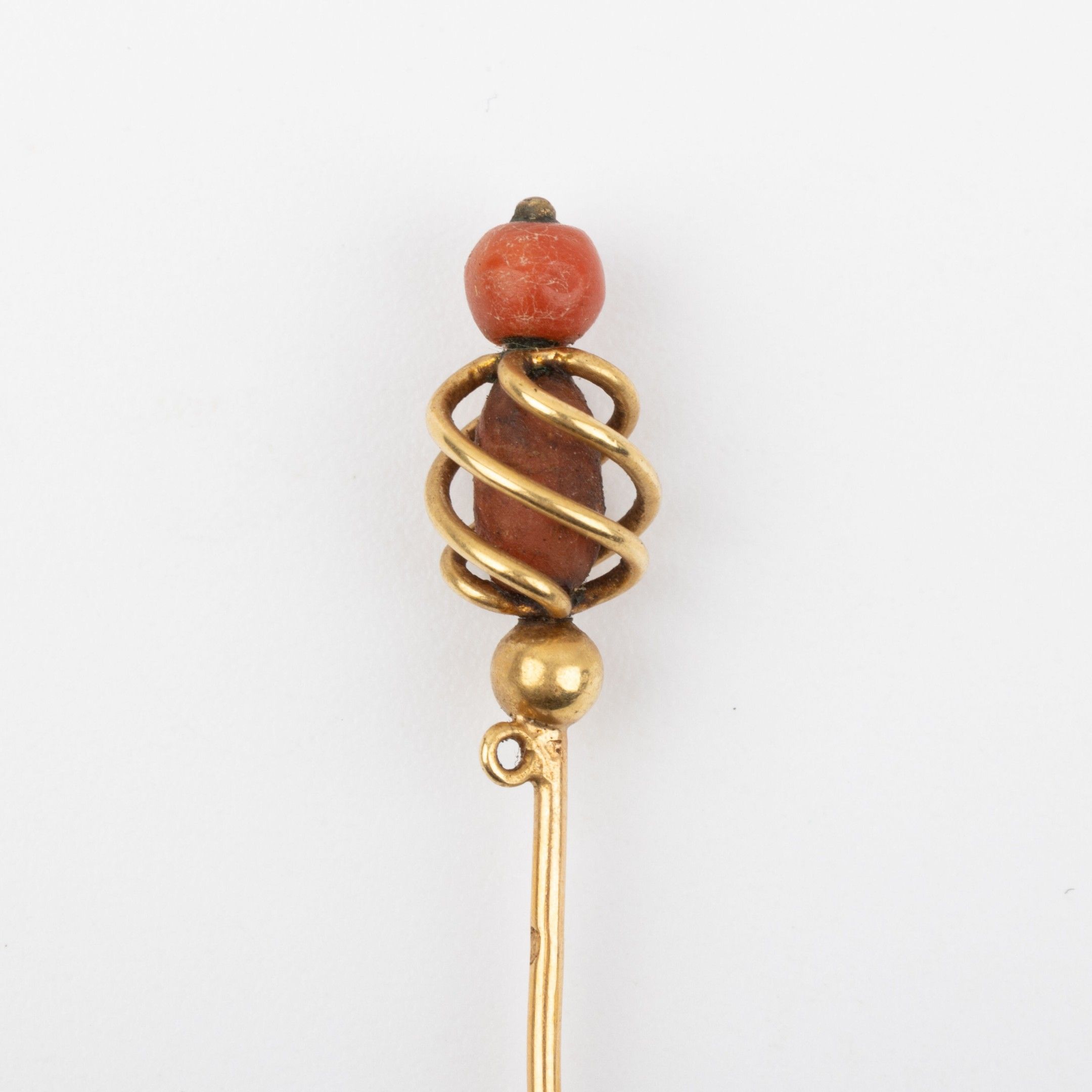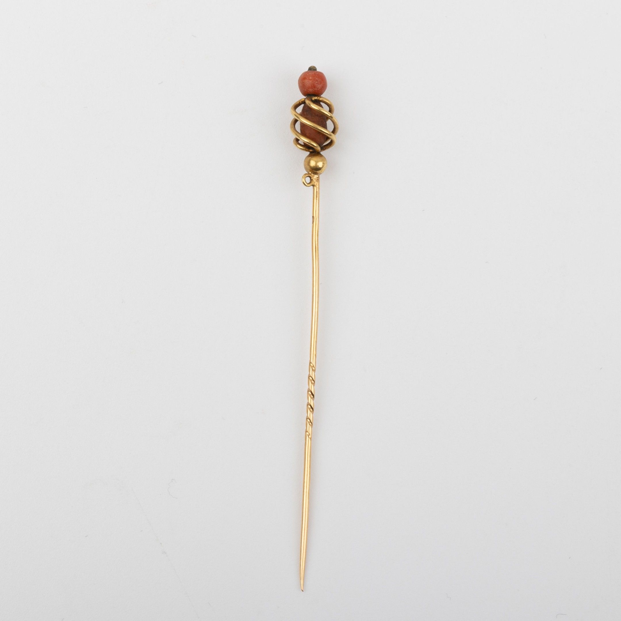 Epingle à cravate or 18K et boules de corail Poinçon tête de cheval, Fin XIXème Poids brut : 1.8 g