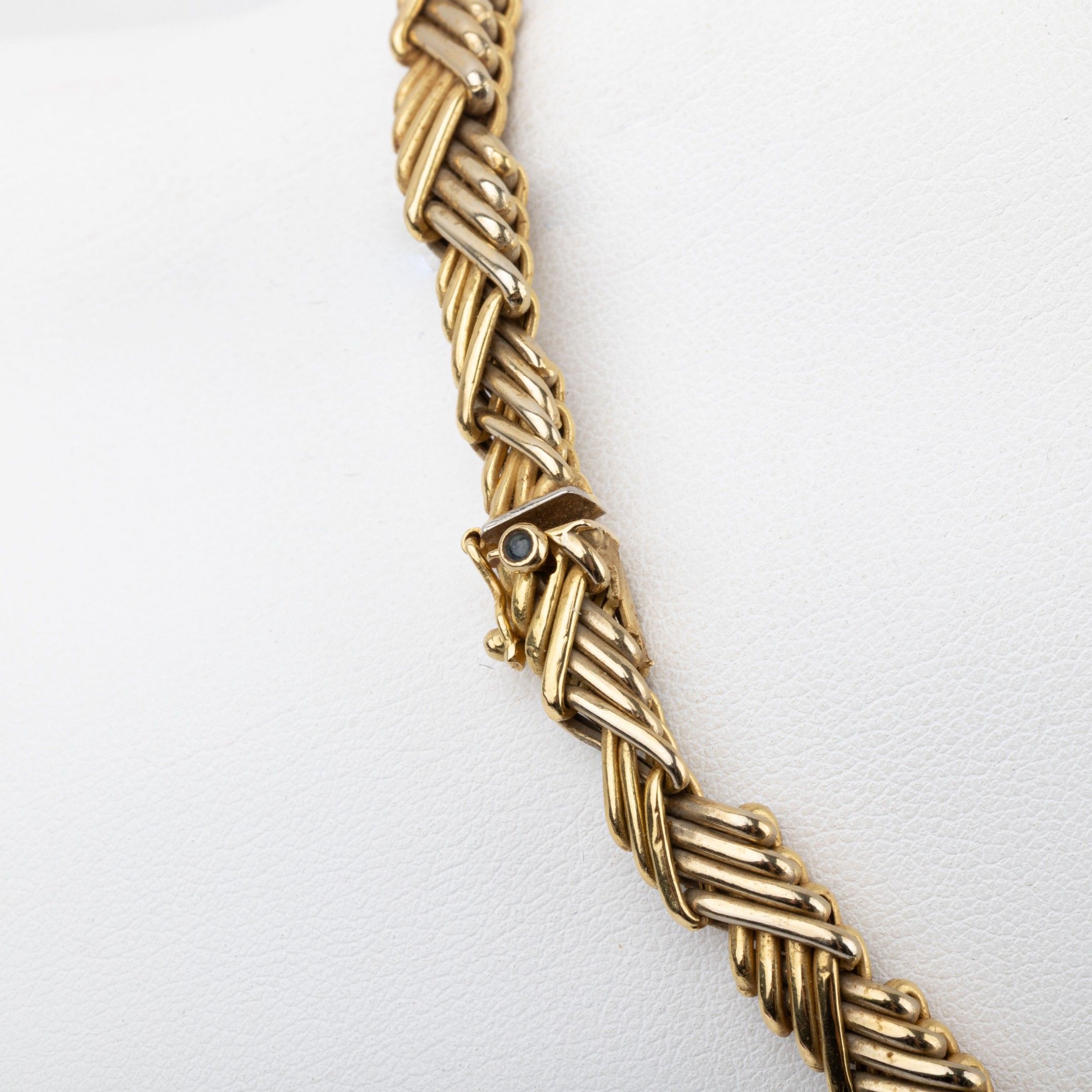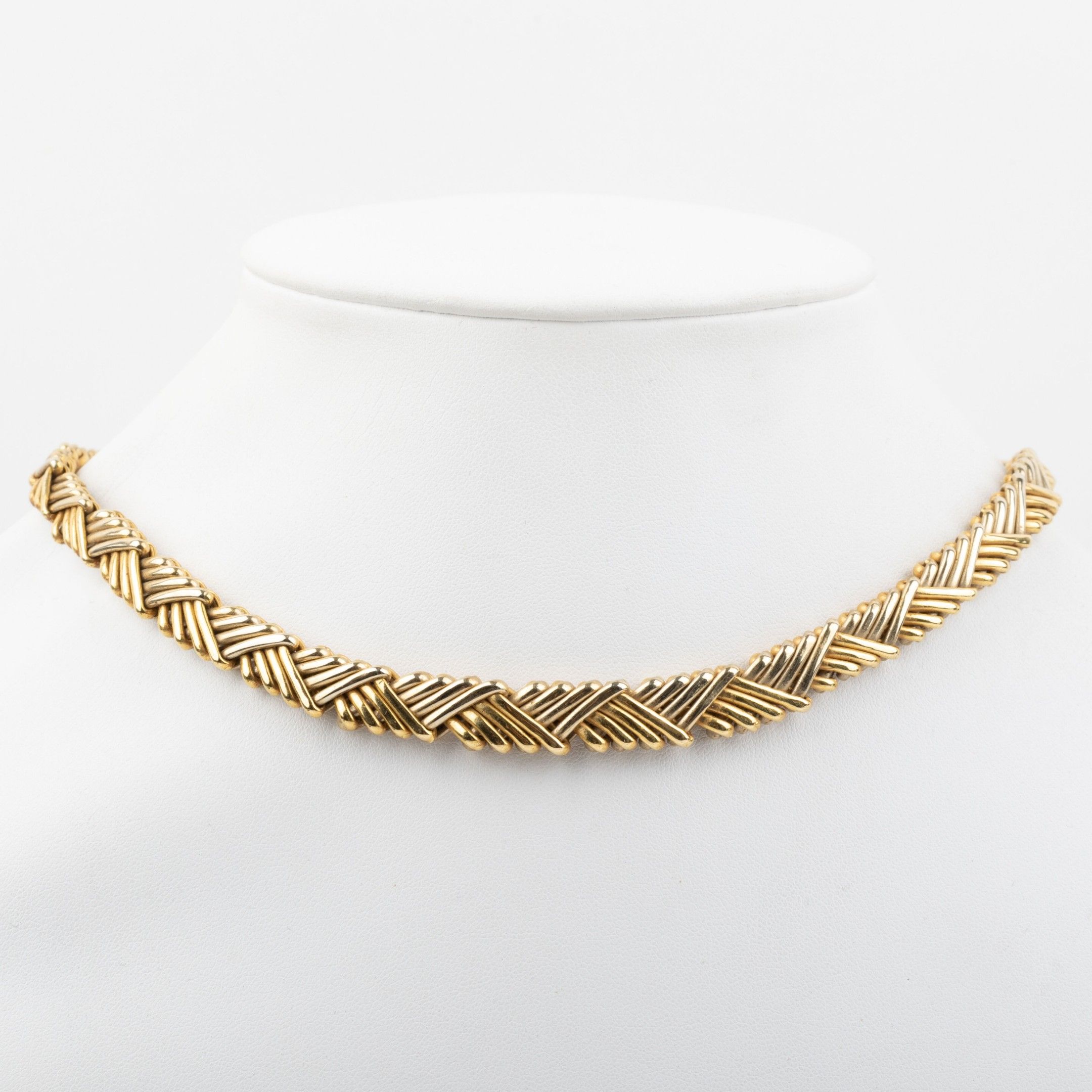 Collier deux ors 18K en chute, maille tressé