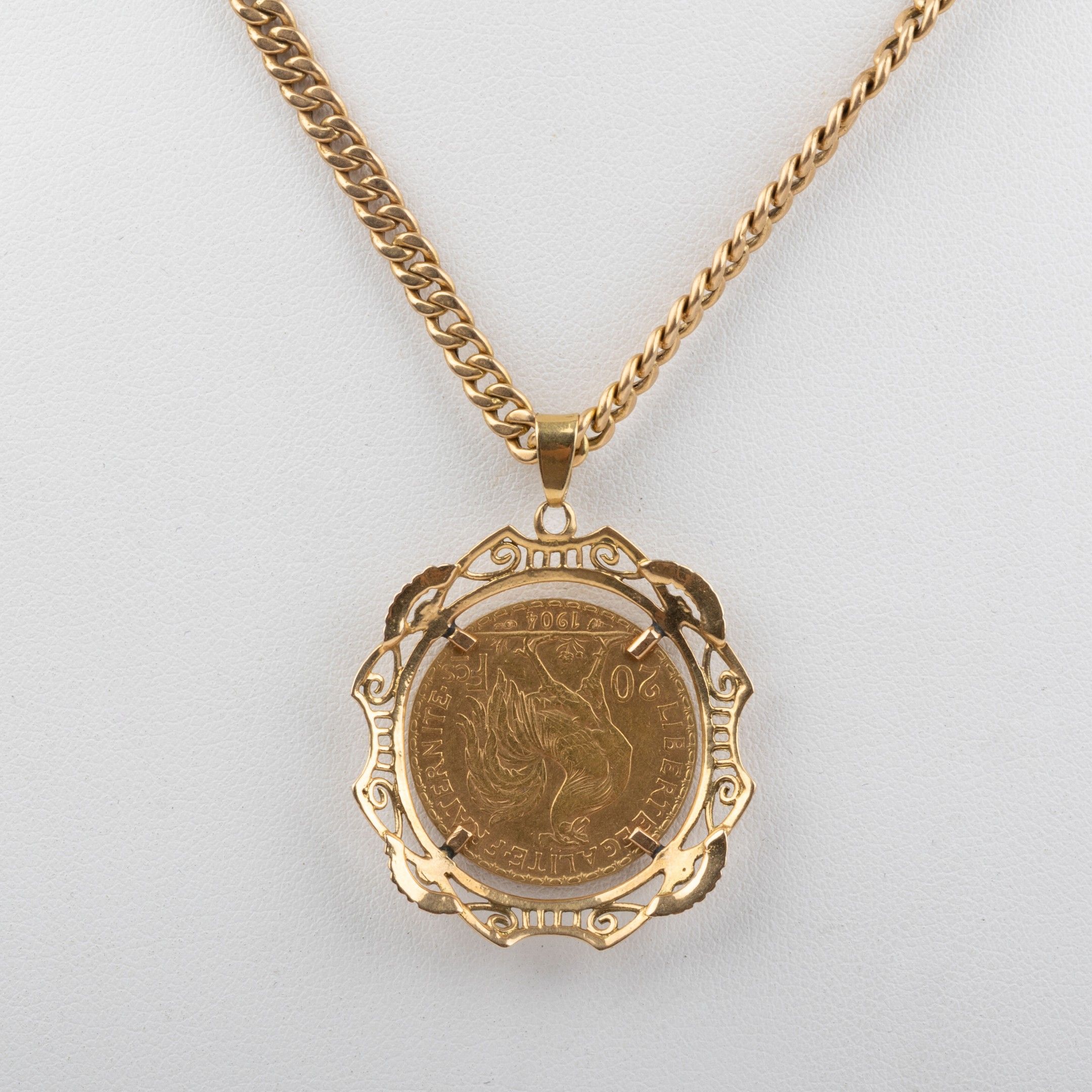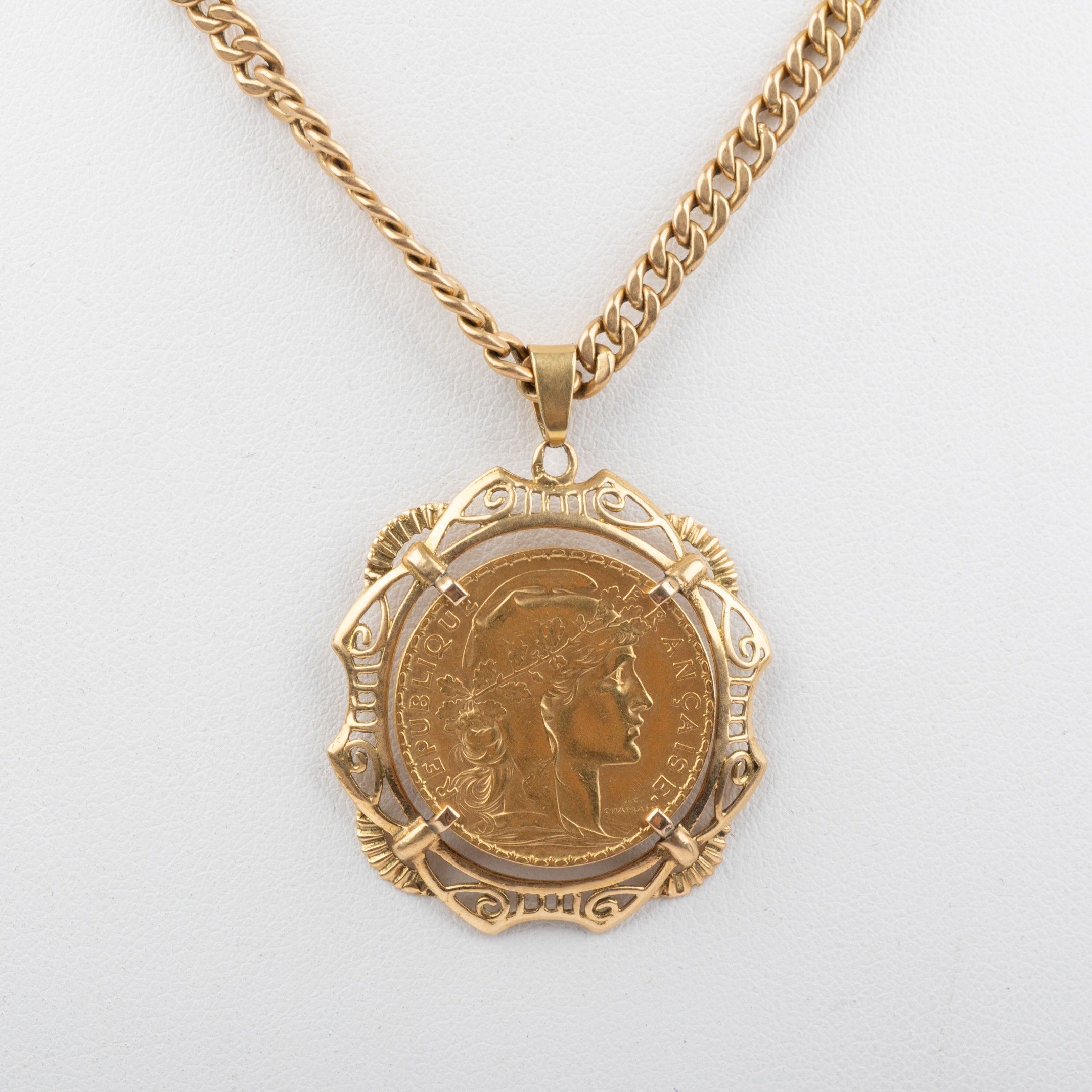 Chaine or 18K maille anglaise et pendentif pièce 20 Fr or mo…