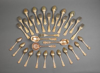 PARTIE DE SERVICE à dessert en vermeil à décor de coquilles …