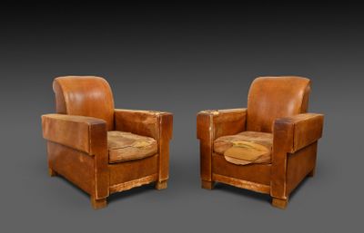 Travail FRANCAIS vers 1930 Paire de FAUTEUILS club entièreme…
