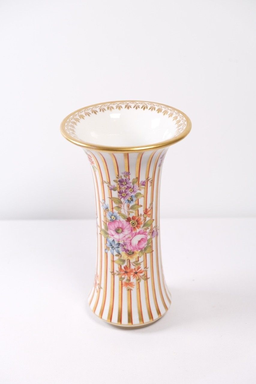 Vase en porcelaine de Paris à décor floral sur fond rayé.