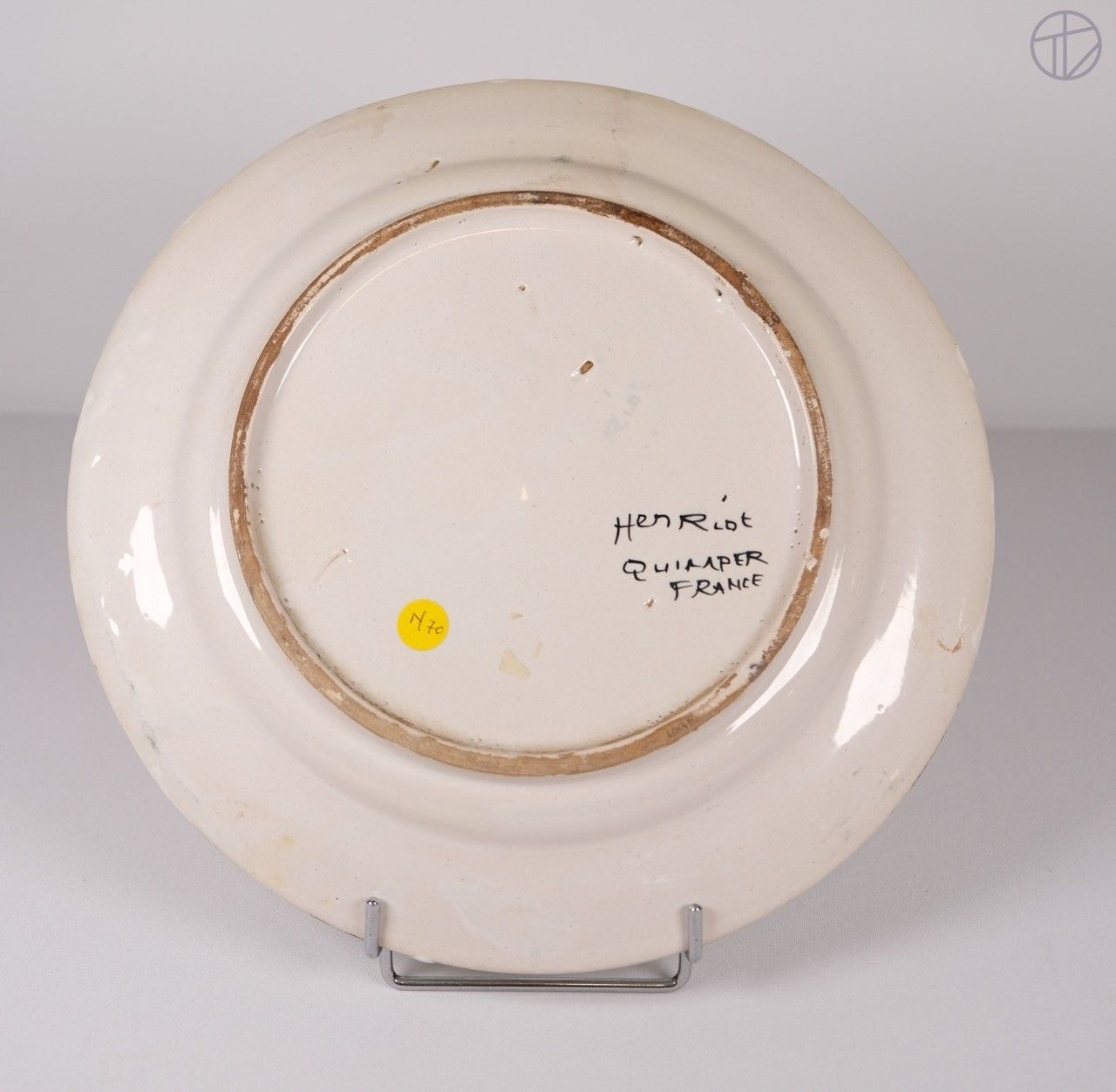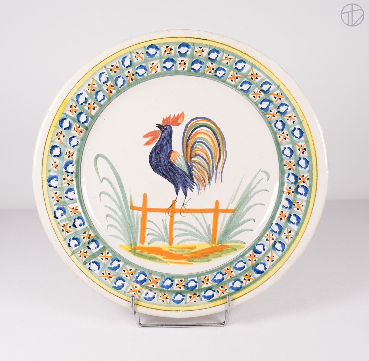 HENRIOT, Assiette en faïence de Quimper à décor de coq.