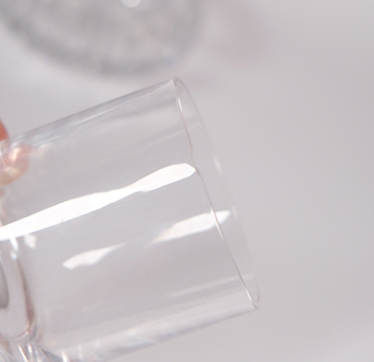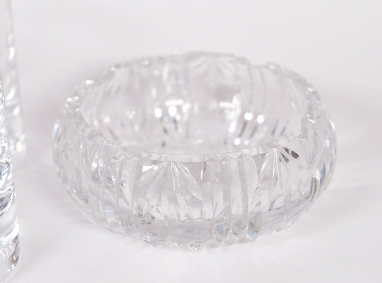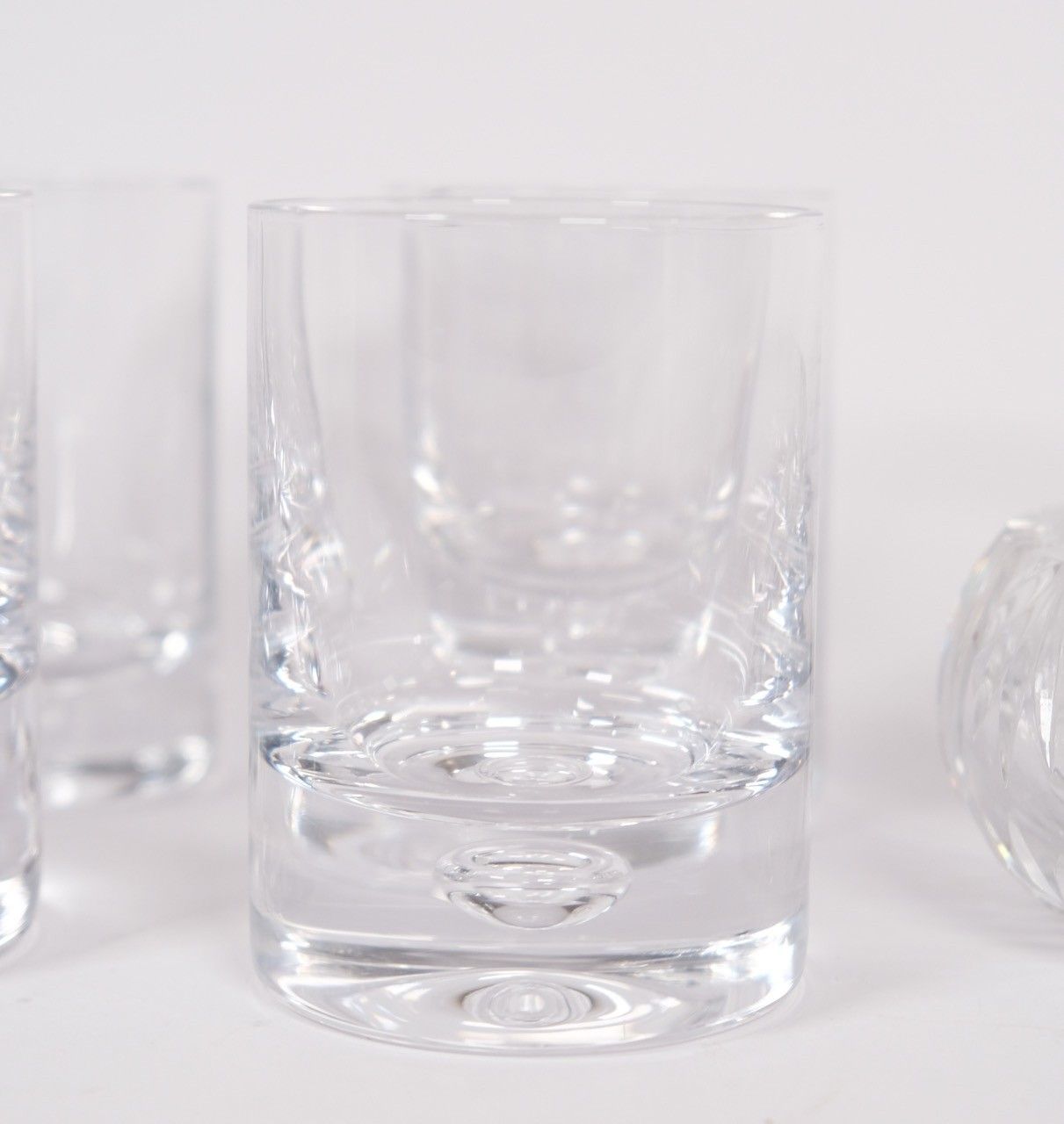 6 verres à whisky en verre. H : 10,5 cm (un ébréché). Il est joint un vide-poche en cristal taillé