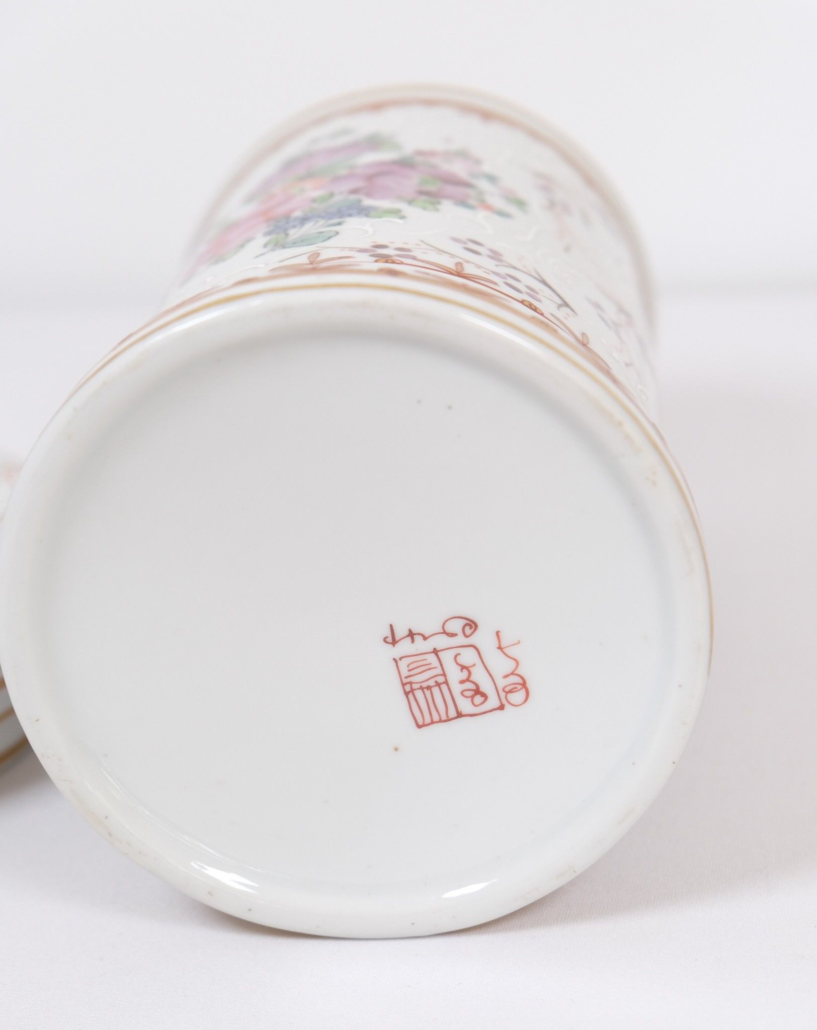 Pot couvert en porcelaine à décor armorié, dans le style de l'Ancien. H : 26,5 cm