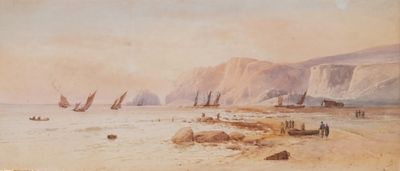 Edward NEVIL (XIX-XX) "Pêcheurs et falaises en bord de mer"