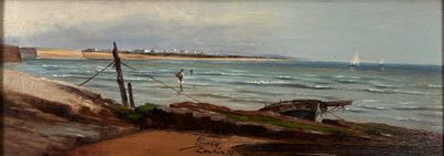 A. FUENTAS (XIX-XX) "Bord de mer à Cadix" (1893)