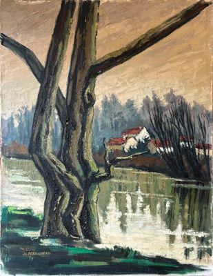 Jean-Louis PERRAUDEAU (XX) "L'étang dans la Marne"