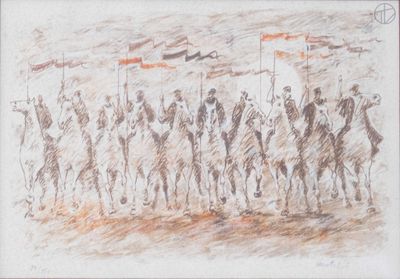 MUTIL (XX) "Les cavaliers" lithographie signée en bas à droi…