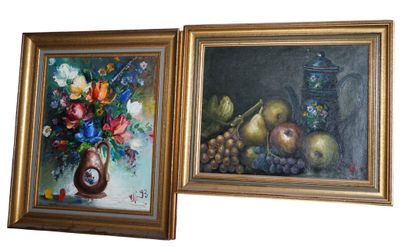 ECOLE XXe Bouquet de fleurs dans une cruche et Nature morte …