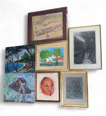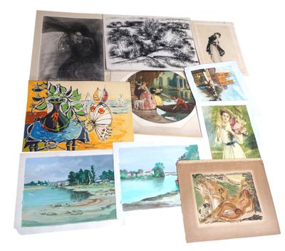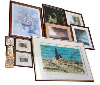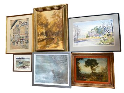 Lot de PIECES ENCADREES comprenant peintures et aquarelles d…