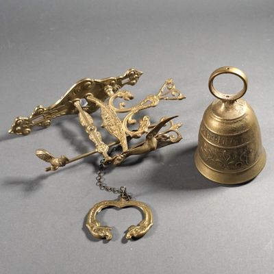 CLOCHE d'entrée en bronze et son support à décor de terme ai…