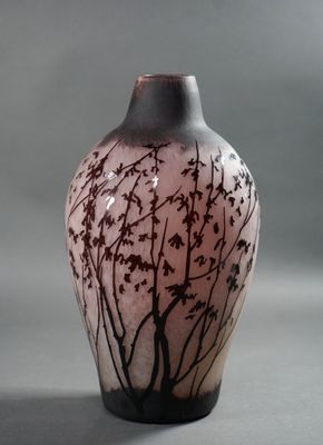 VASE en verre à décor dégagé à l'acide d'arbres sur fond rou…