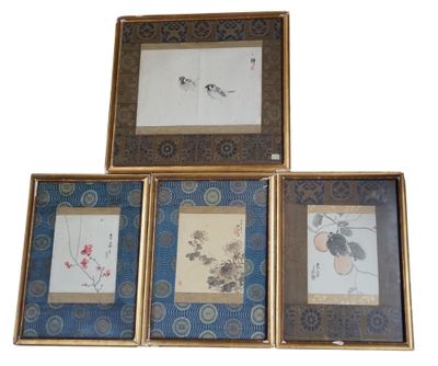 Ecole japonaise XXe. Fleurs et oiseaux.