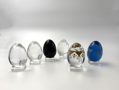 BACCARAT SIX OEUFS en cristal, certains taillés, d'autres gr…
