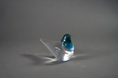 DAUM FRANCE. Oiseau en cristal pressé moulé teinté dans la m…