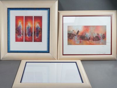 Trois PIECES ENCADREES comprenant lithographie de Léonor Fin…