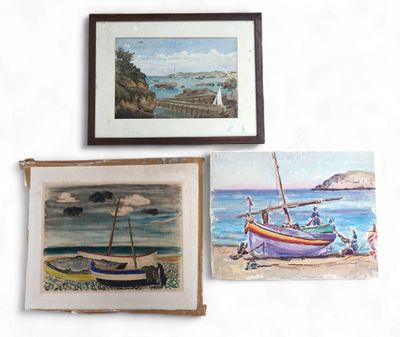 Trois MARINES comprenant lithographie signée Le Bret et deux…