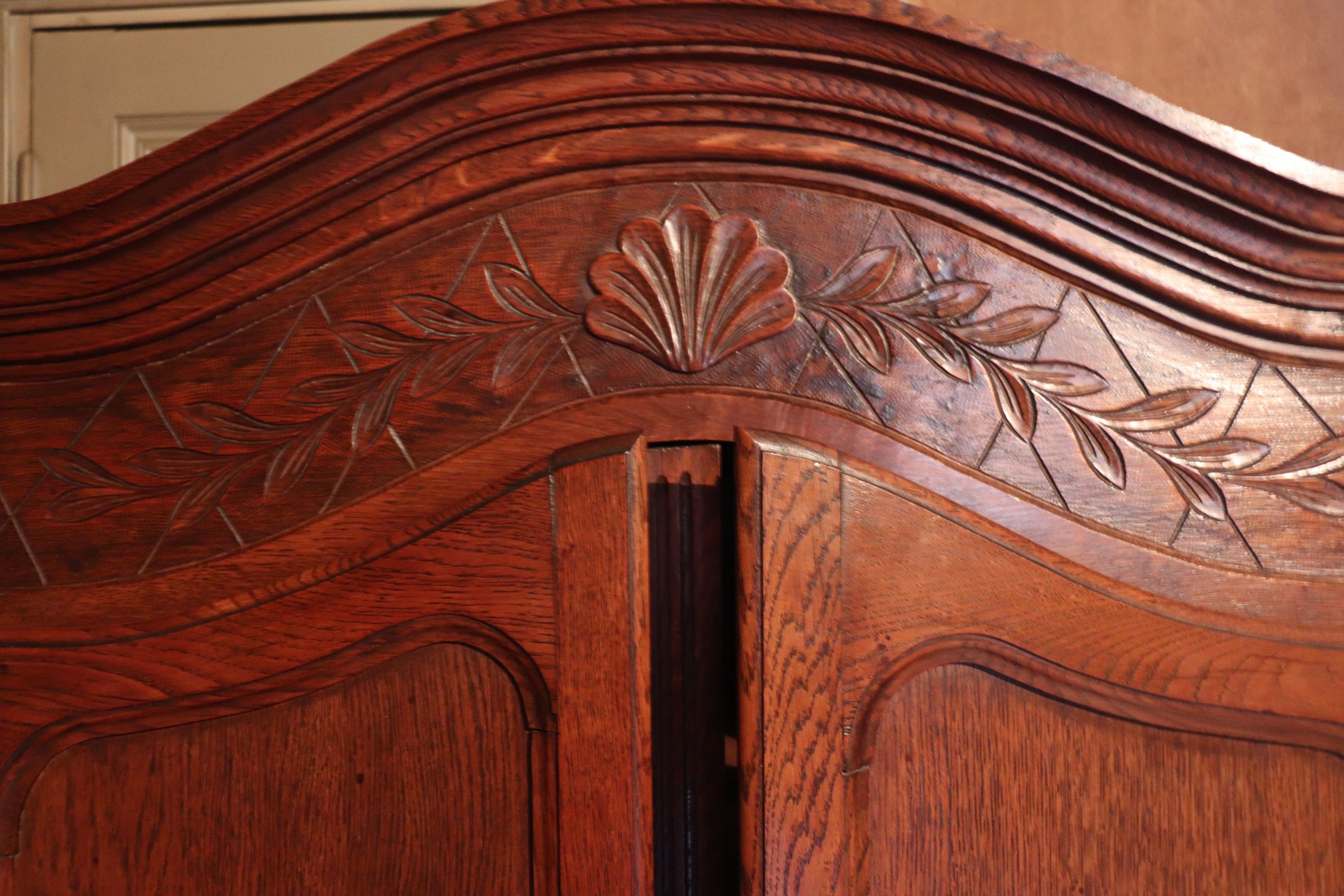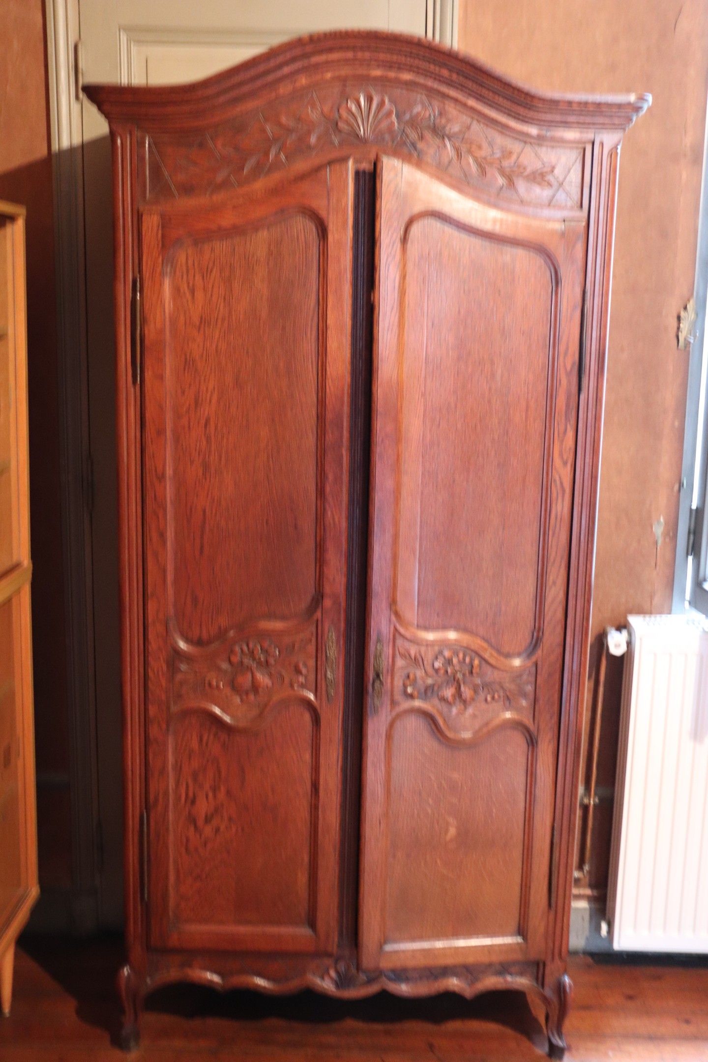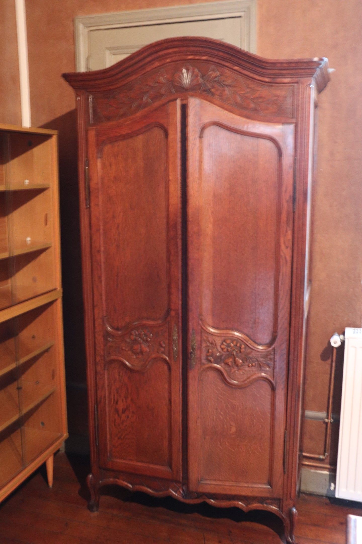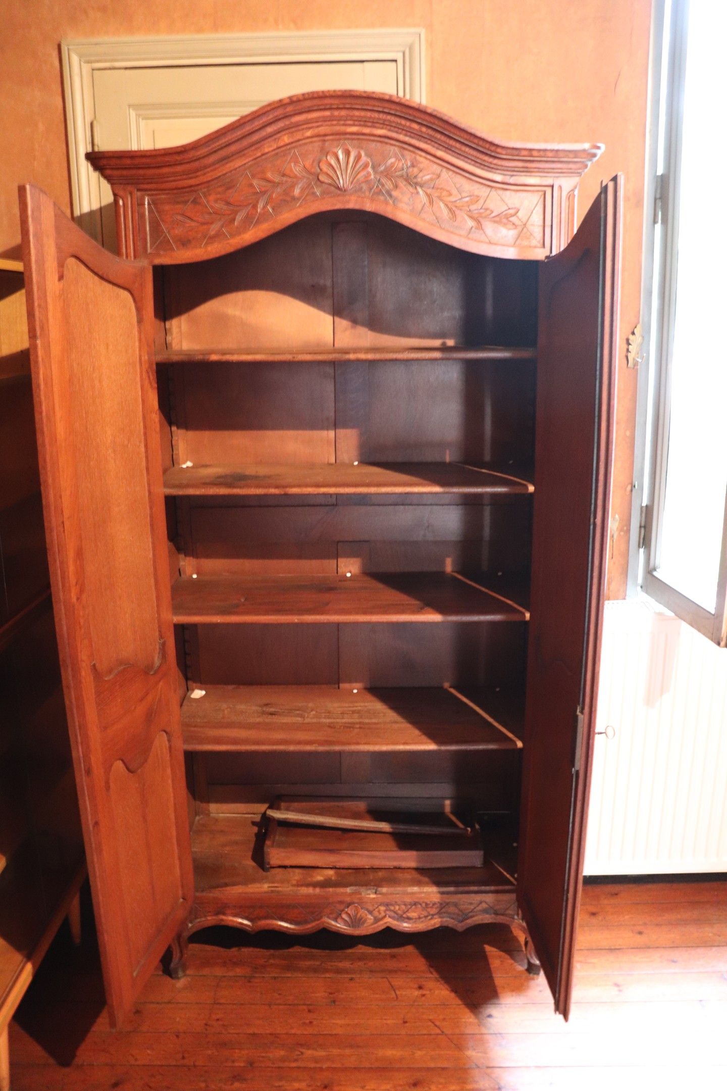 Petite armoire de style Louis XV à deux portes moulurées, chapeau de gendarme. 197 x 100 x 44 cm