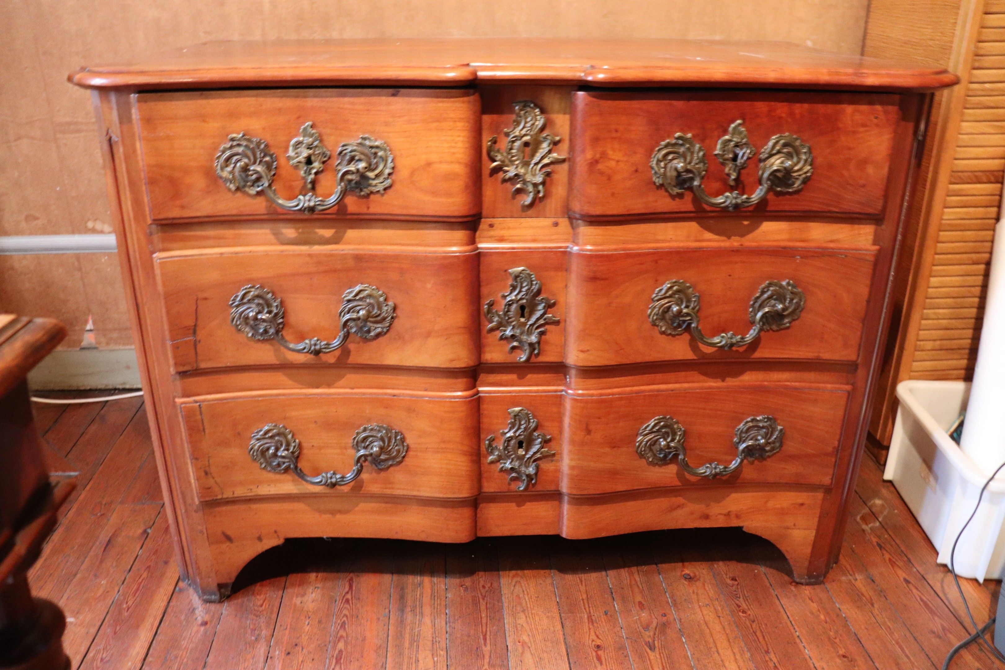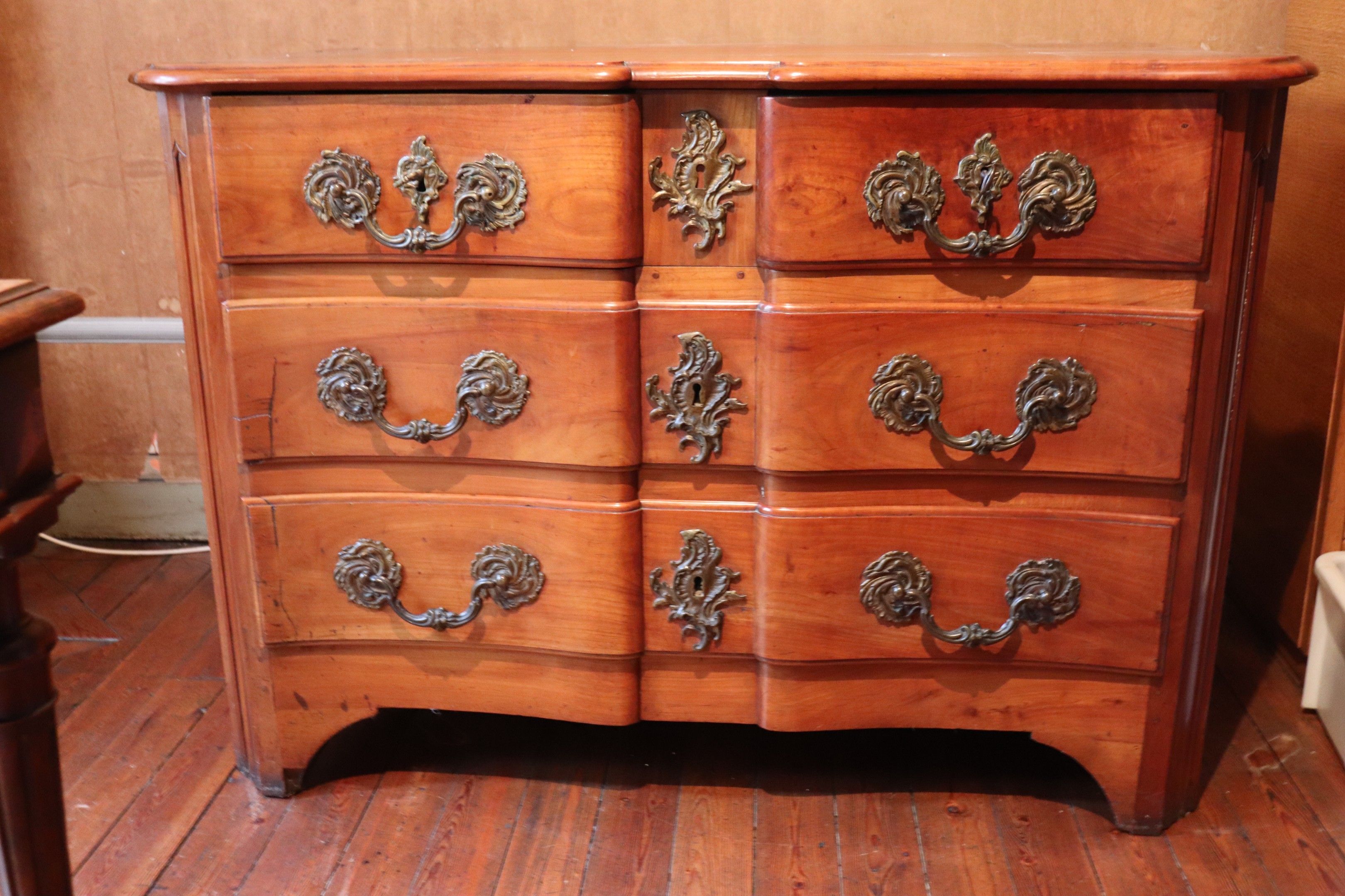 Commode de style Louis XV en bois naturel, facade de forme a…