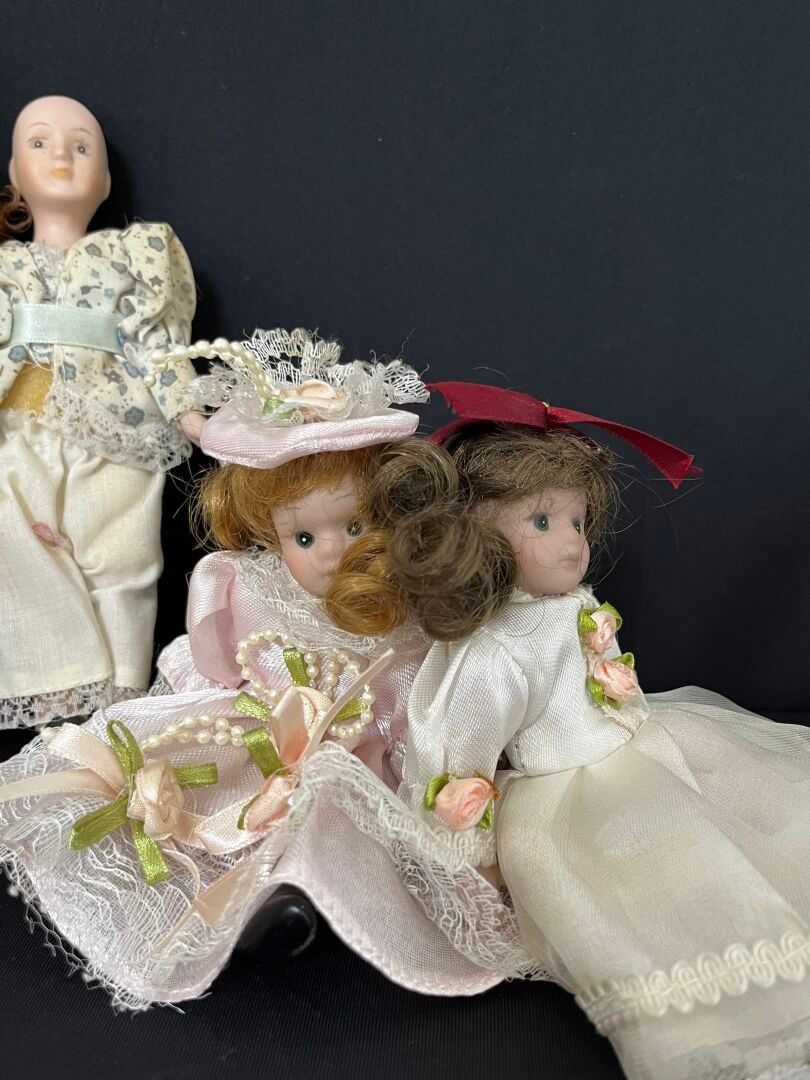 [Jouet]. [Enfantina]. LOT de diverses poupées miniatures en porcelaine dont une poupée Emma Bovary de la collection "Dames d'époque". 7 poupées au total.