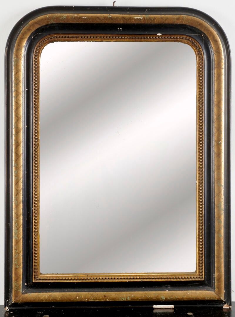 Miroir En bois doré et noirci à doucine XXème siècle H.: 85 cm; L.: 61 cm