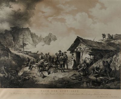 Ecole flamande du XXème siècle "Nach Der Gems Jagd" Estampe …