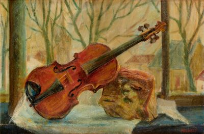 G. MICHELS (XXème siècle) "Nature morte au violon" Huile sur…