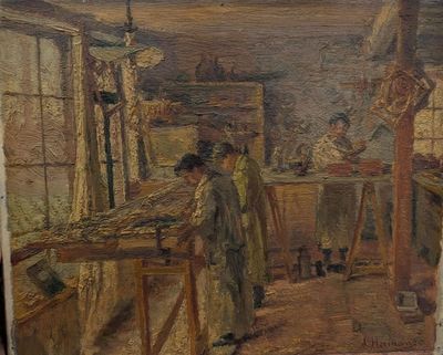 Charles HERMANS (1839-1924) "Atelier d'encadreurs" Huile sur…