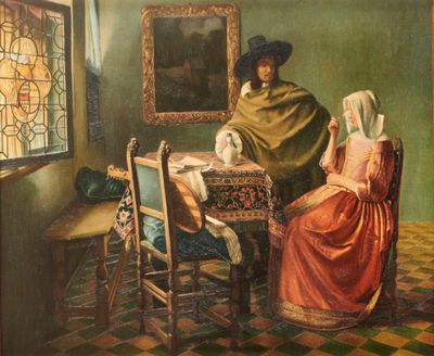 D'après Johannes VERMEER (1632-1675) "La dégustation" Huile …