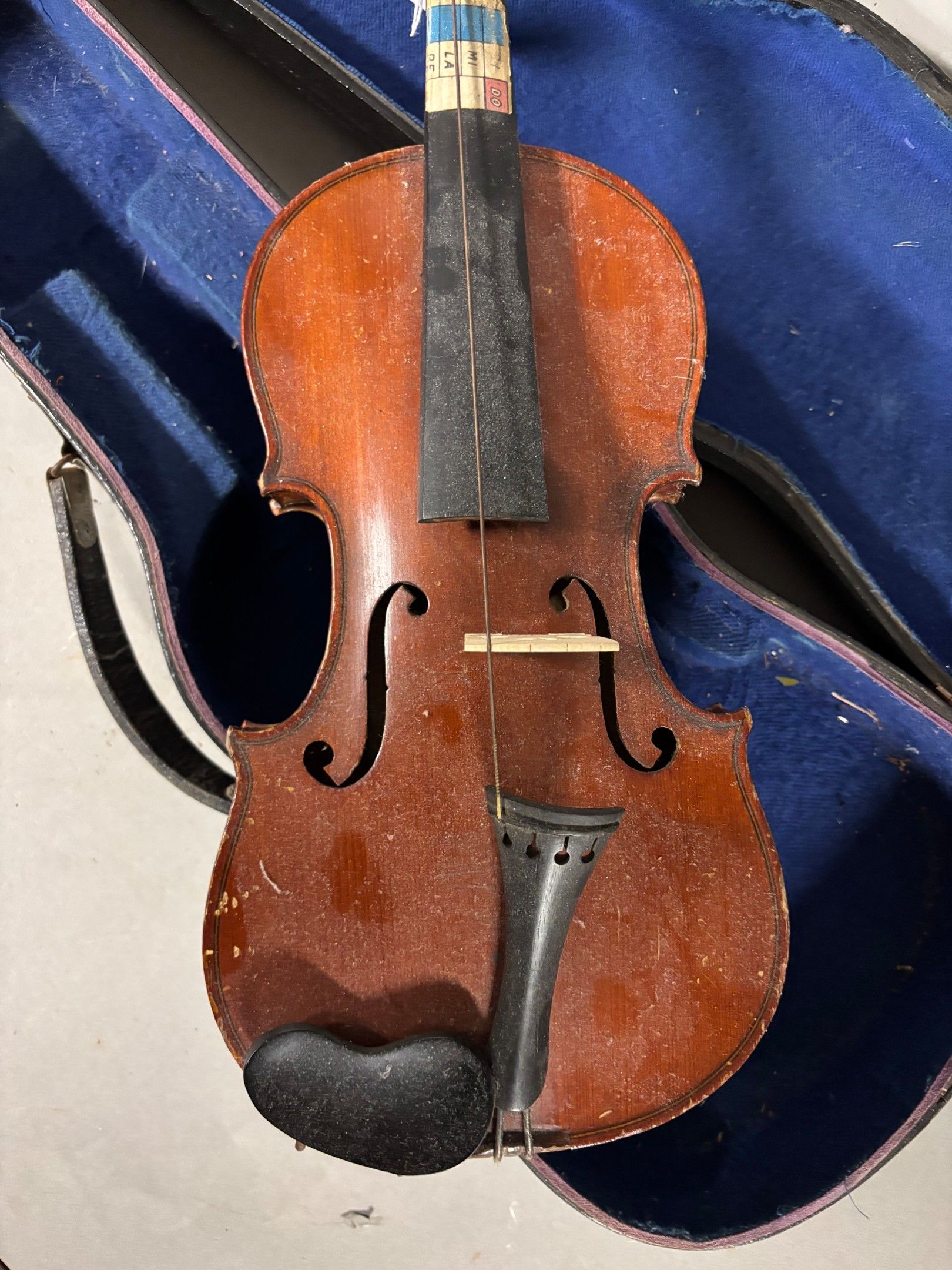 VIOLON d'étude en bois. Signé Torelli. En l'état; L. 50 cm. Etui