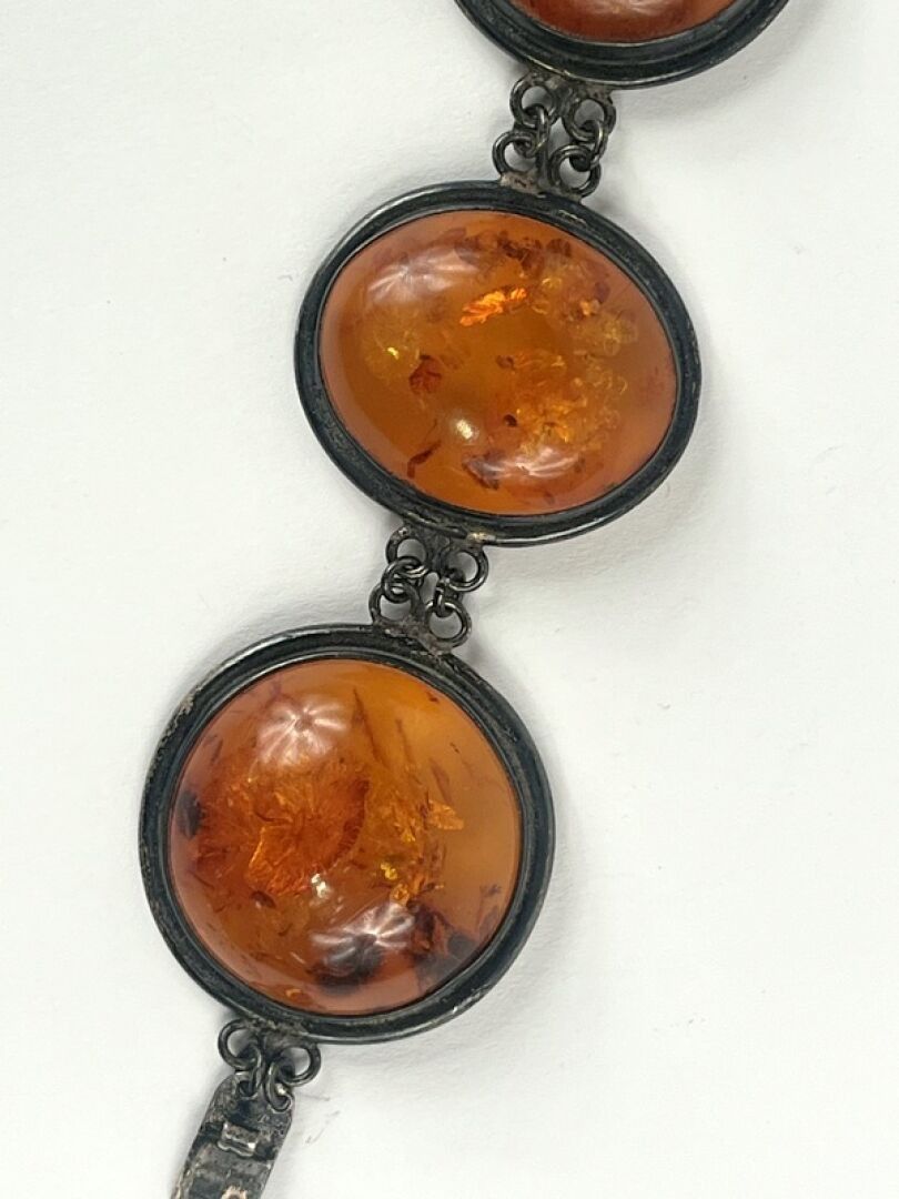 Bracelet composé de 5 médaillons d'ambre. monture en argent 925 millièmes. Tour de poignet : 22.5 cm environ