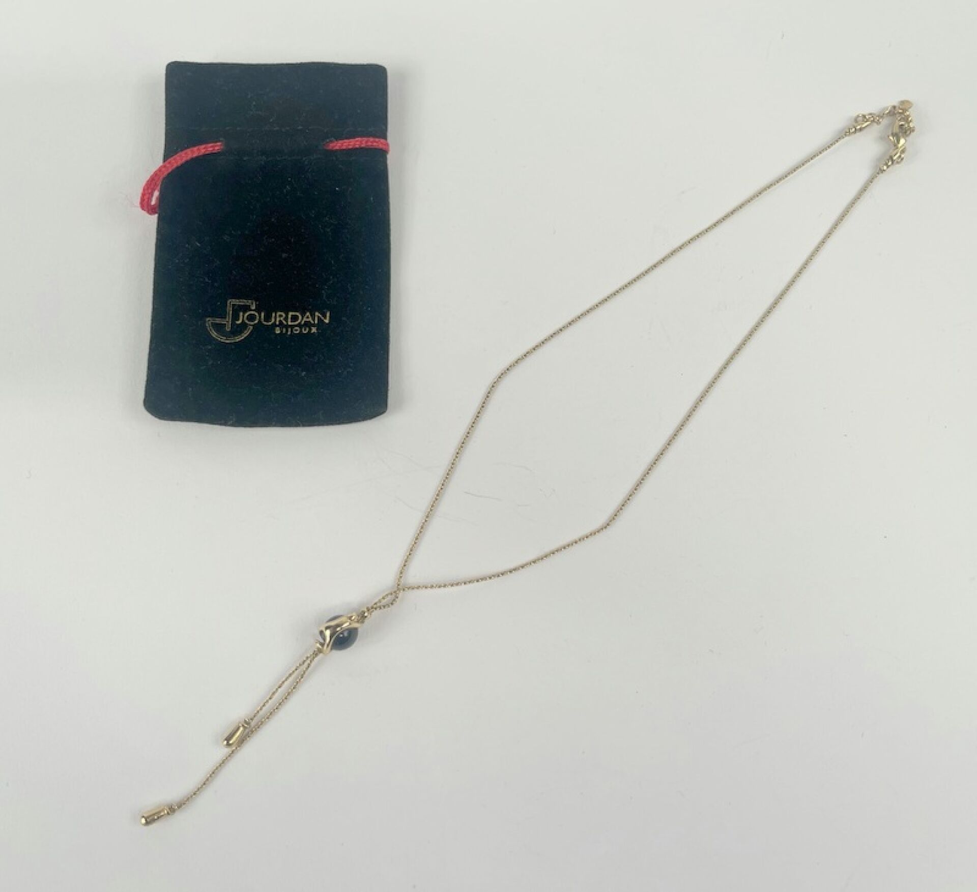 Charles Jourdan : chaine dorée retenant un pendentif en méta…