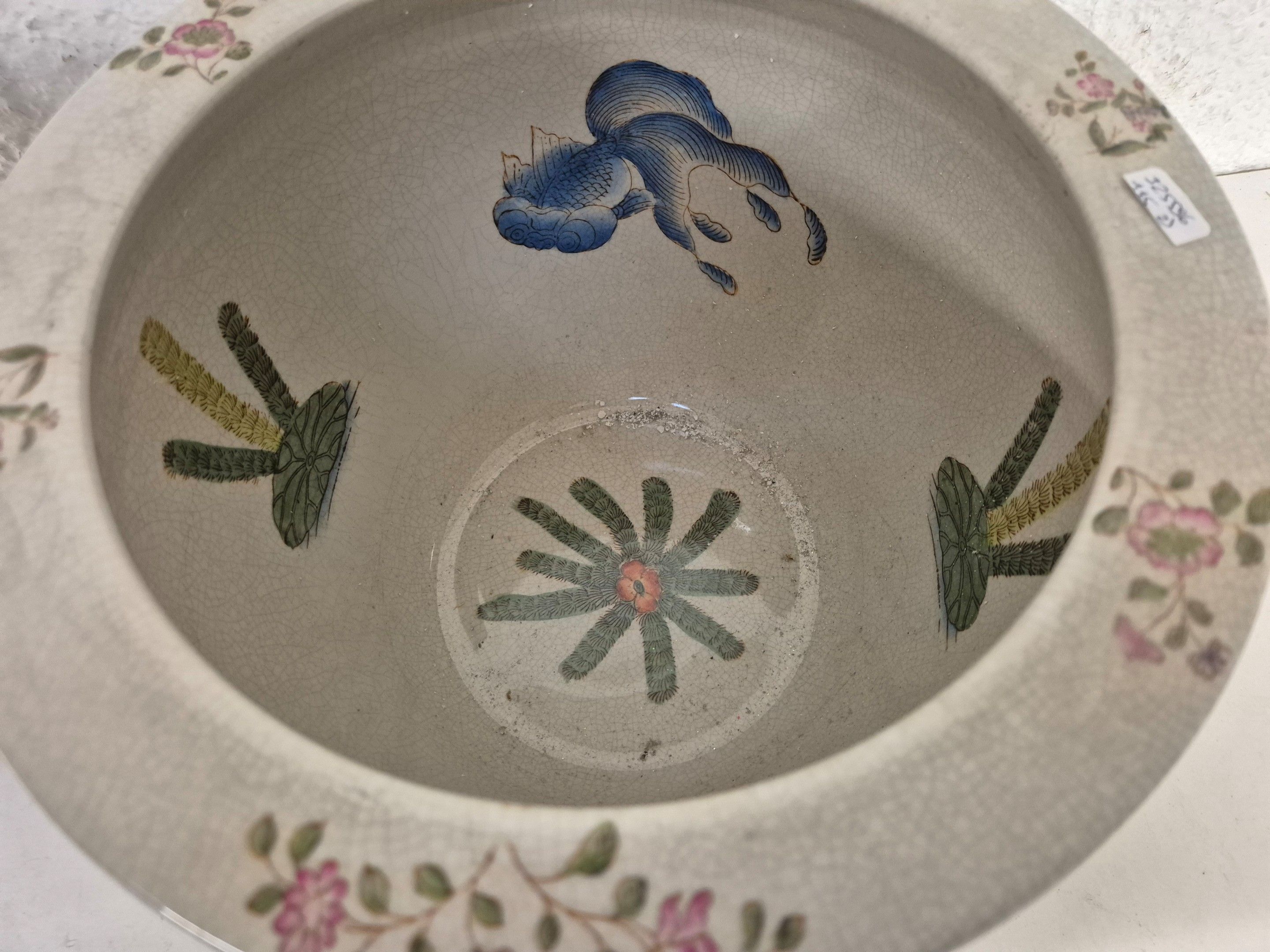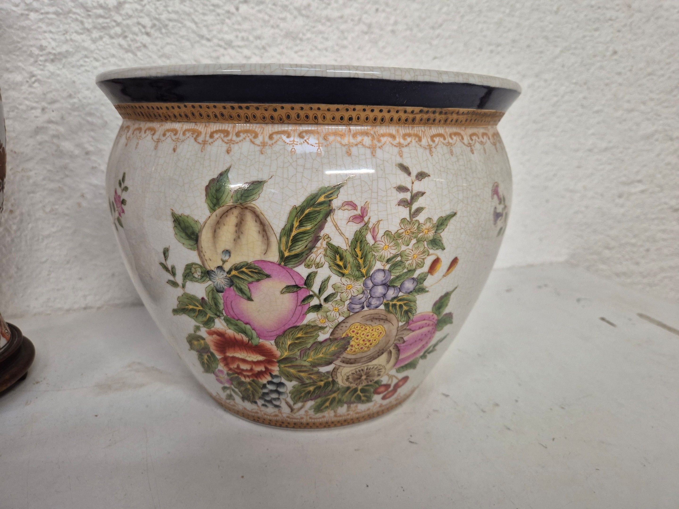 J/ CHINE XXE, cache-pot en faïence à décor de fleurs et frui…