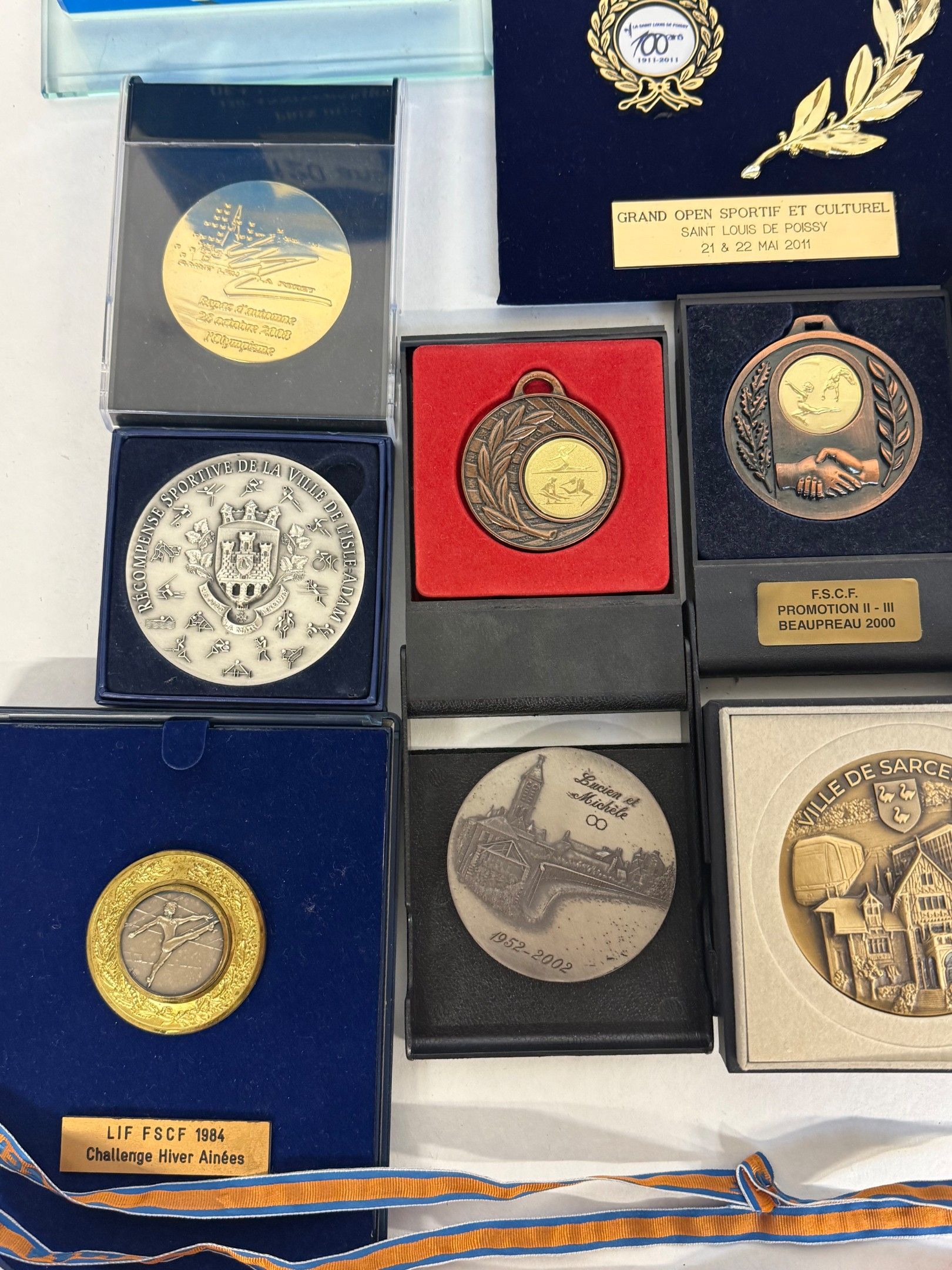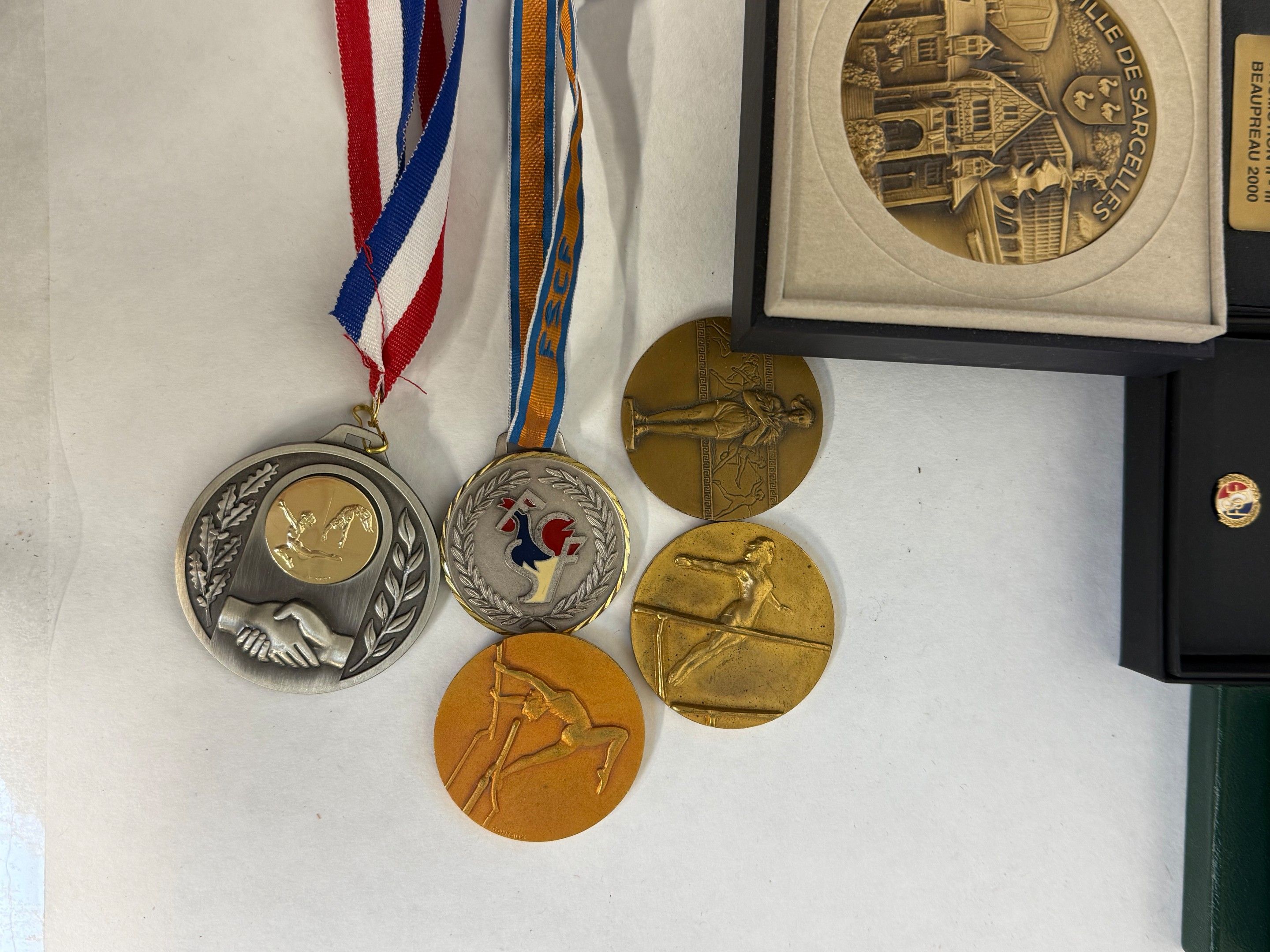 J/ Lot de médailles et prix du 120e anniversair de la fédération sportive et culturelle de France.