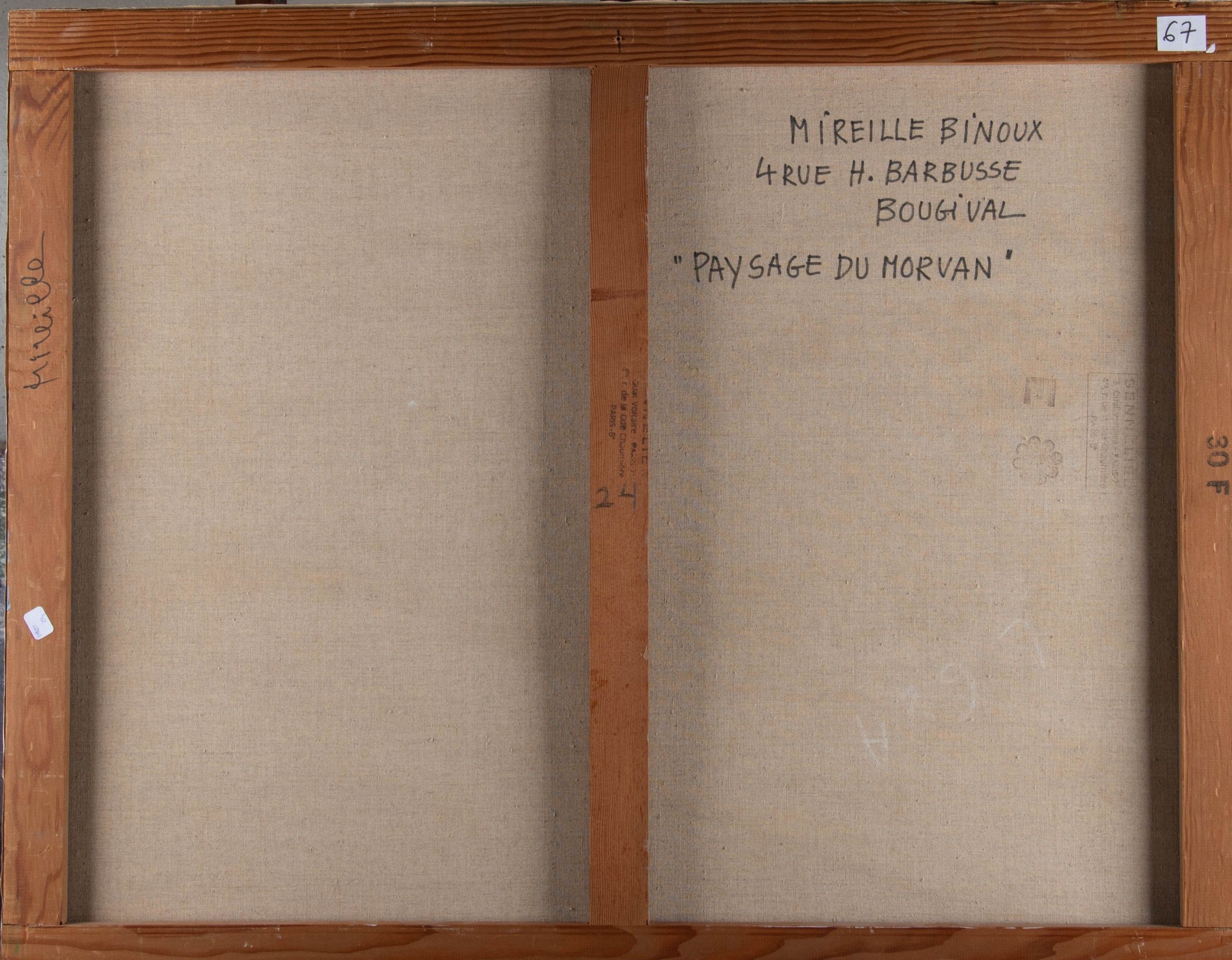 Mireille BINOUX (1929-2014) "Paysage du Morvan" Huile sur toile, signée en bas à gauche, titrée et contresignée au dos 73x92 cm