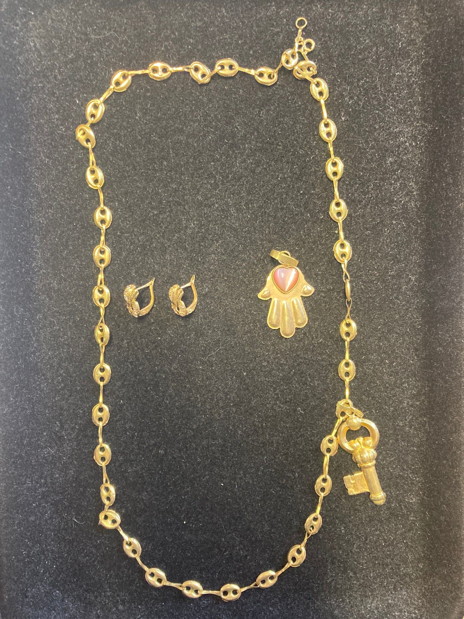 Un lot de bijoux en or 750‰ et pierres (accidents) poids bru…