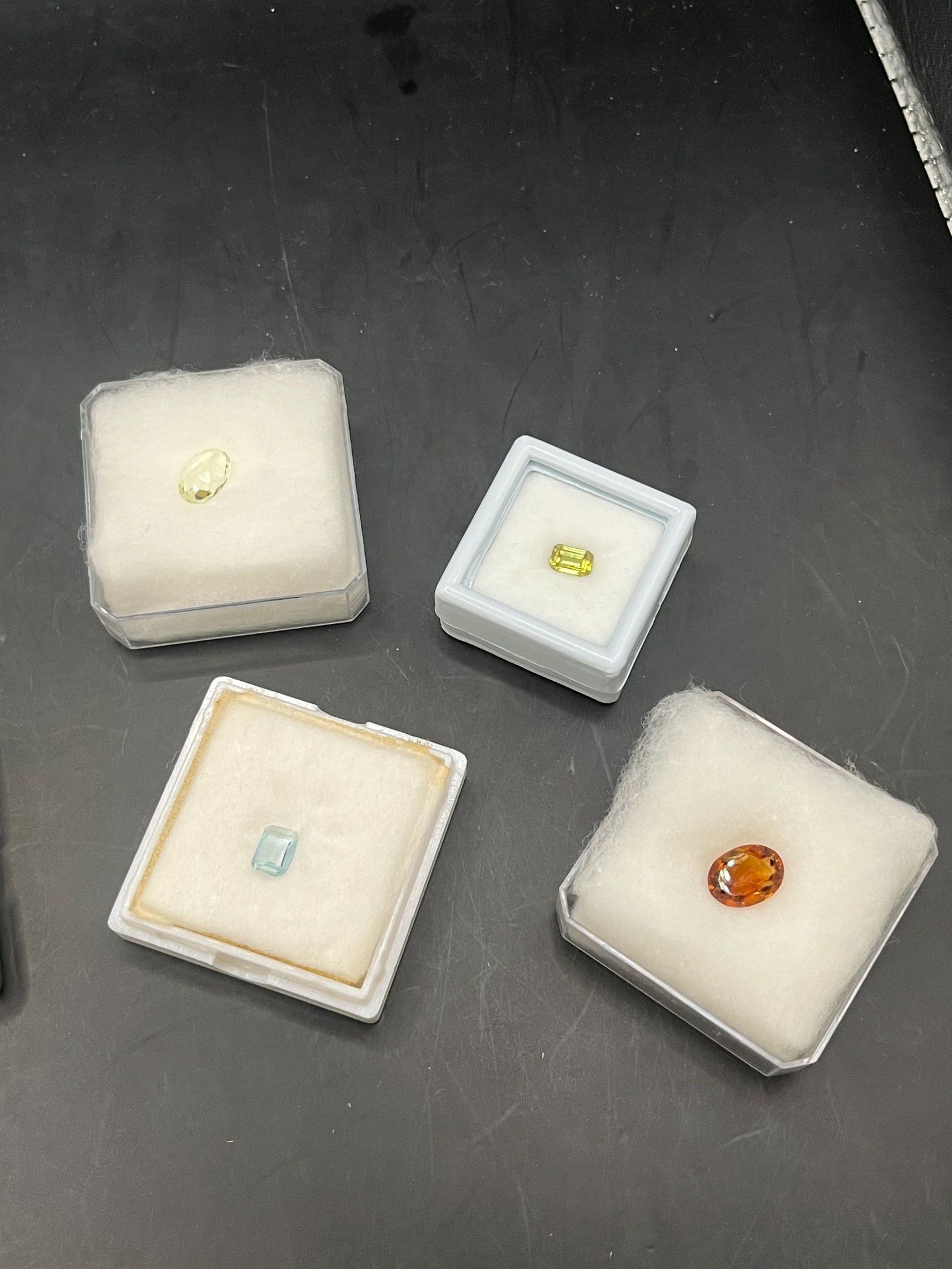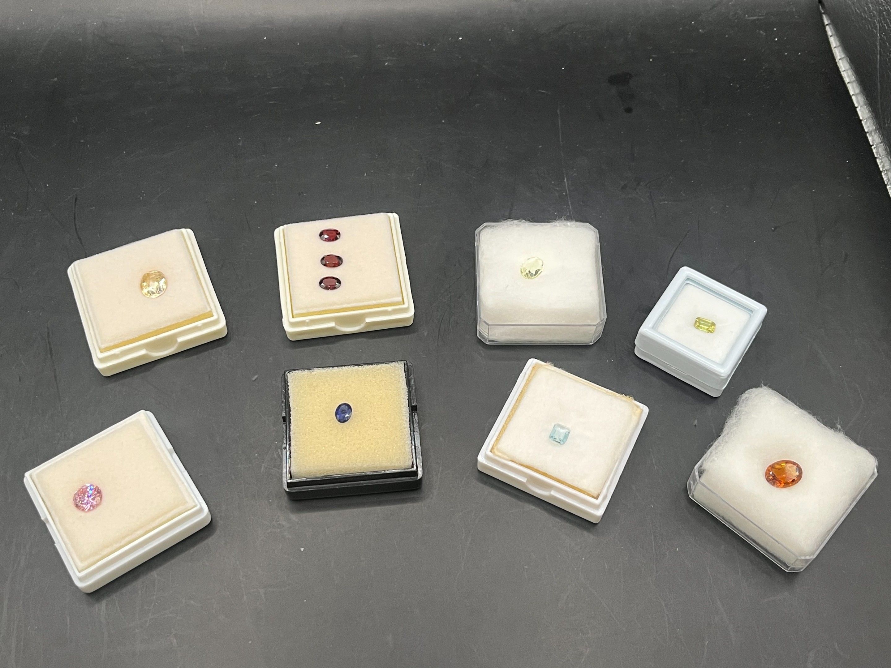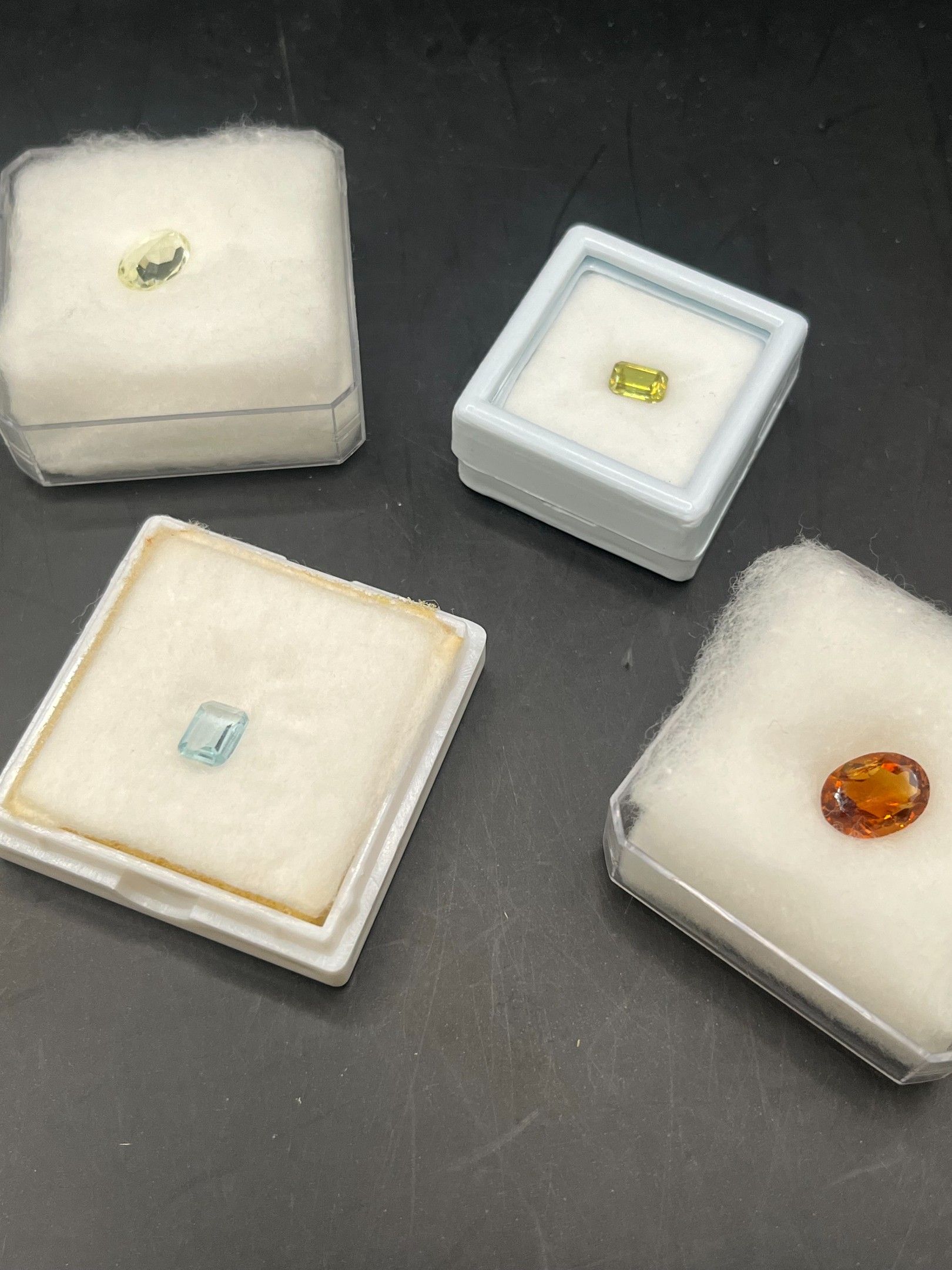 lot de pierres variées (saphir/citrine/grenat/améthyste/tourmaline/aigue-marine) 8 boites provenance diverse