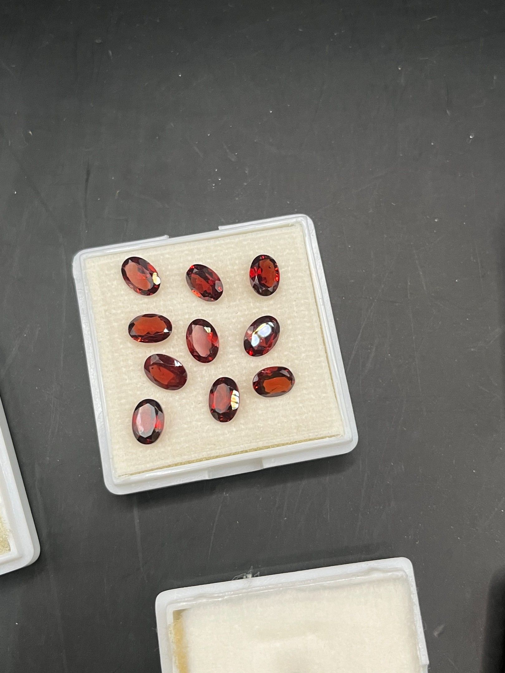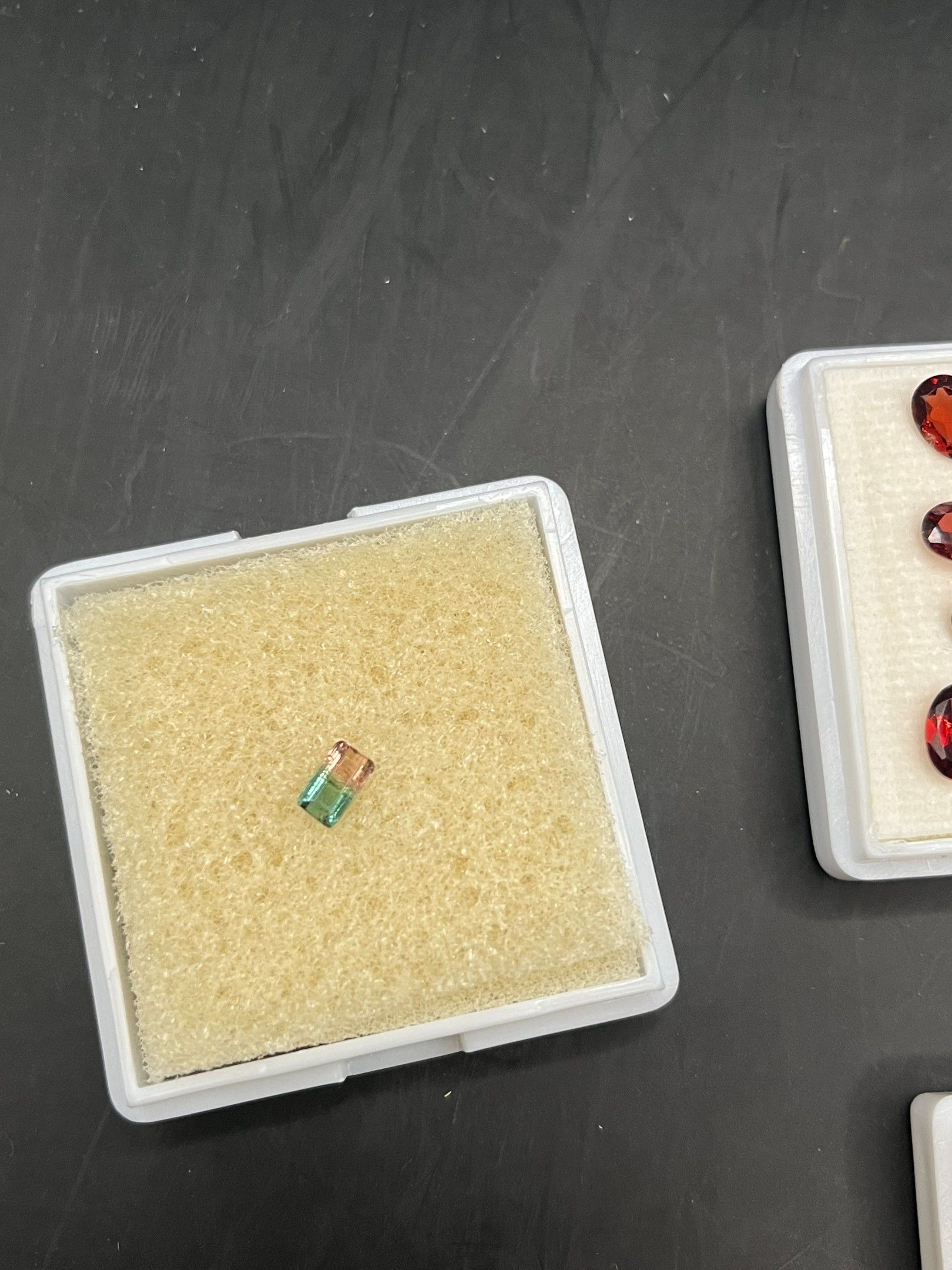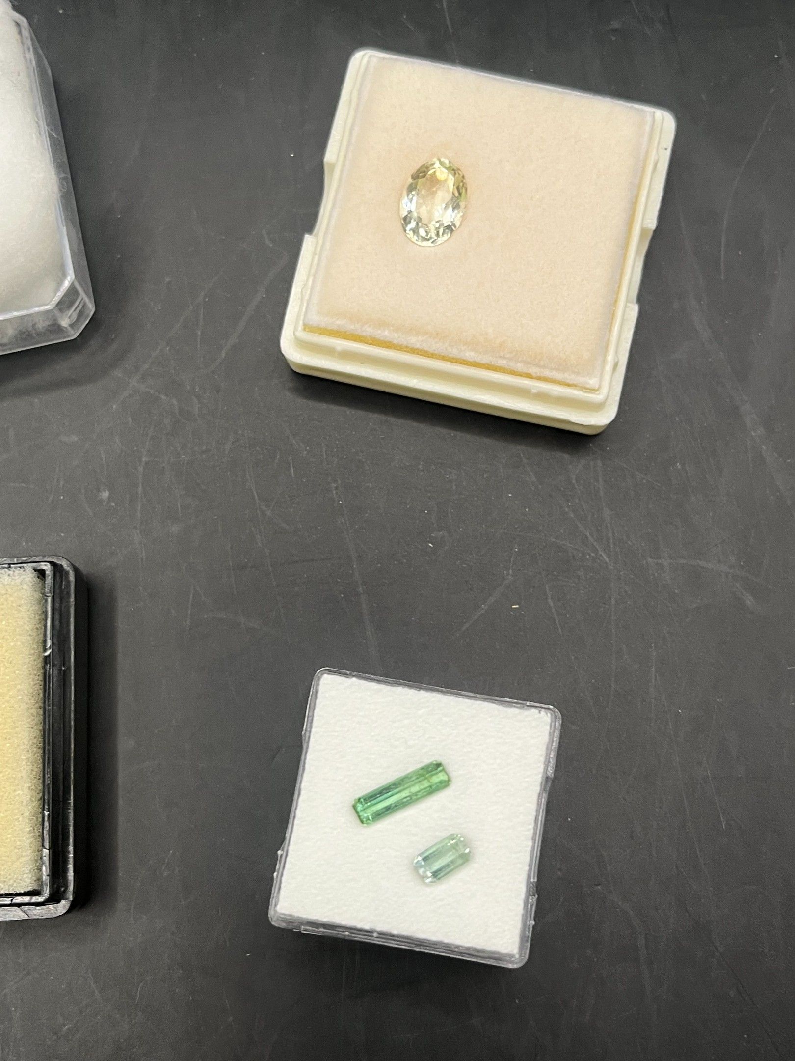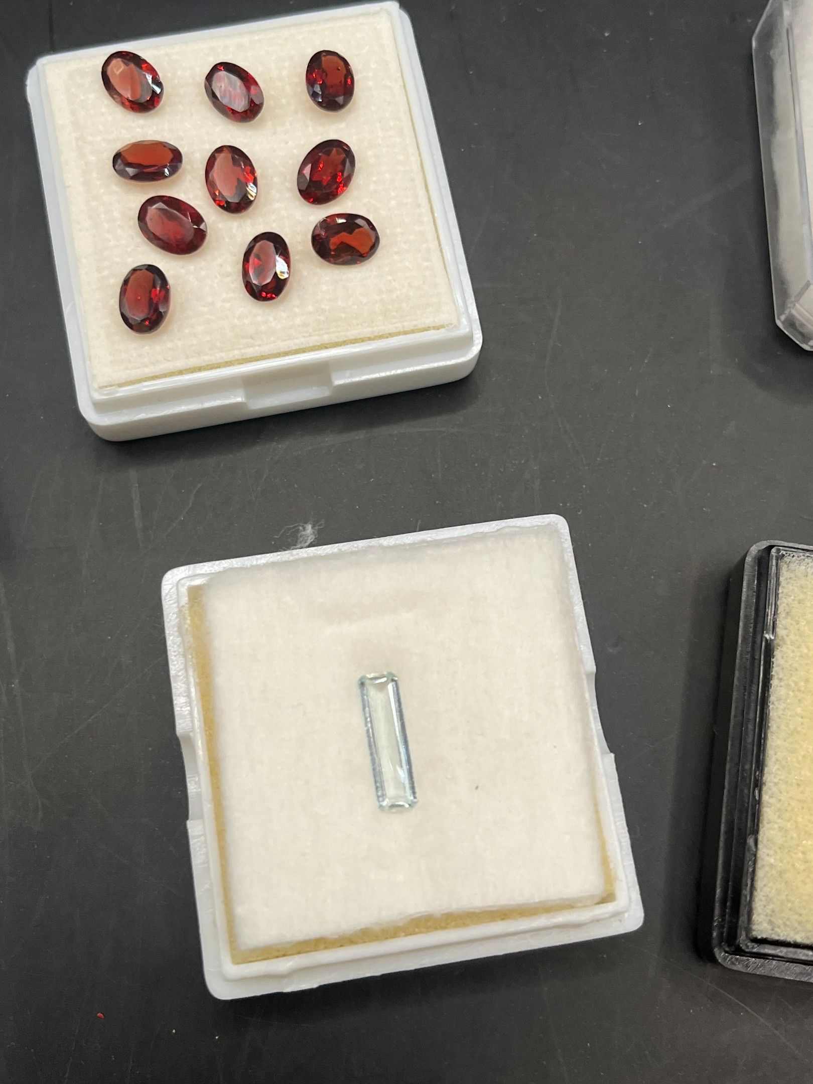 lot de pierres variées (saphir/aigue-marine/citrine/grenat/tourmaline/orthose) 7 boites provenance diverse