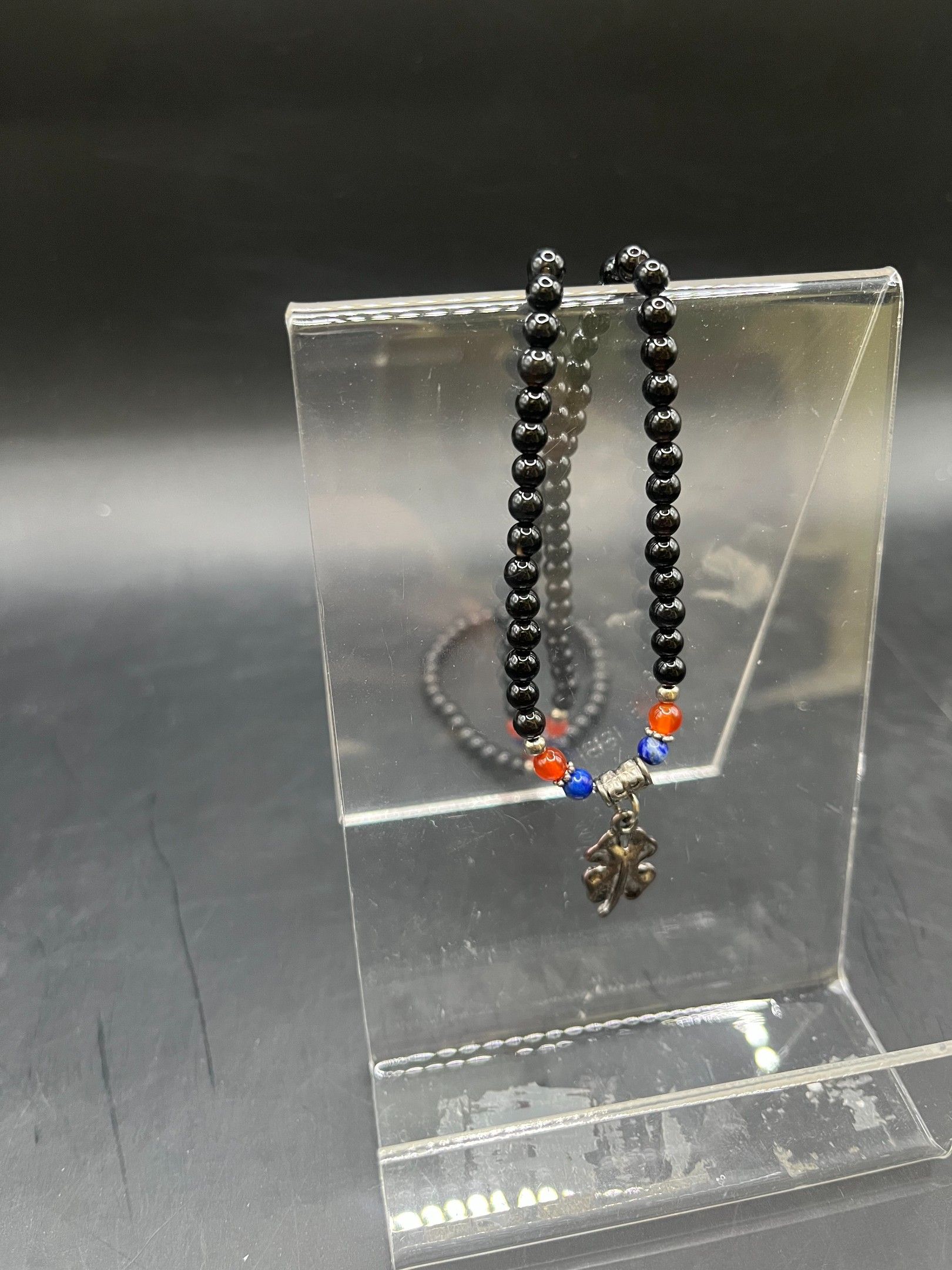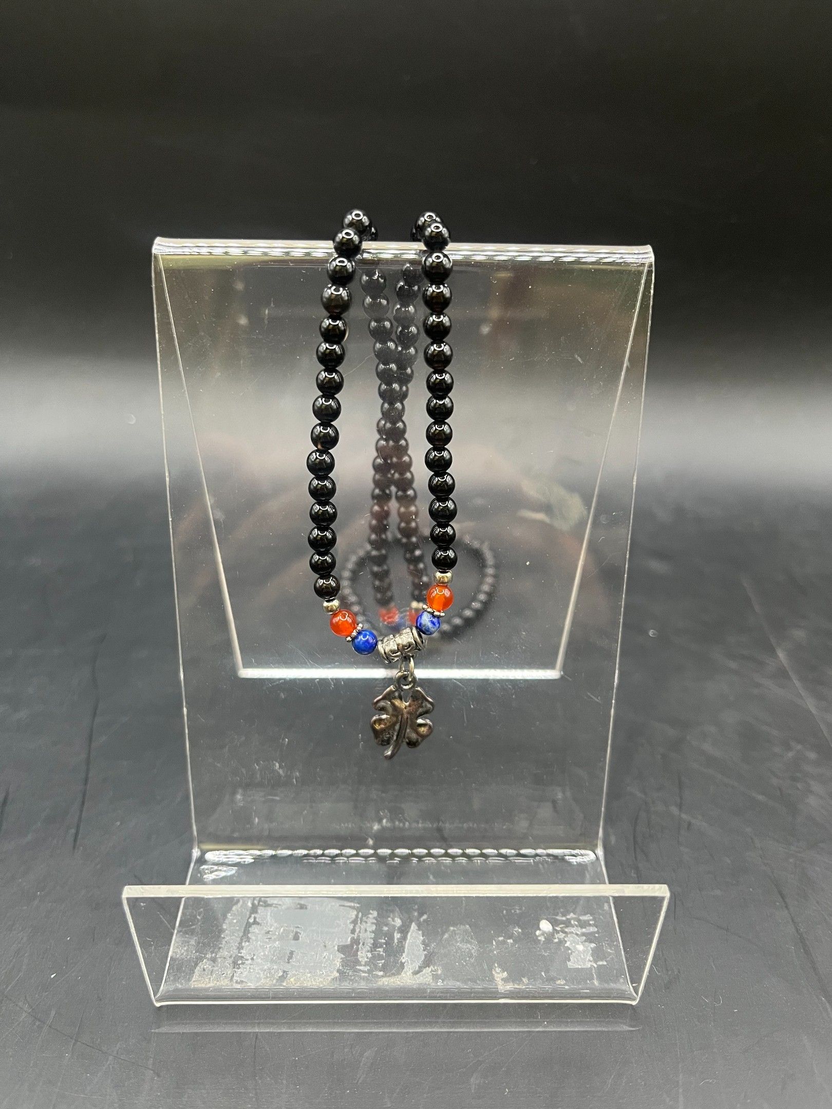 bracelet (neuf) 3 rangs avec finition métal argenté en pierre naturelle de 4mm, onyx noir (top qualité) / fil élastique