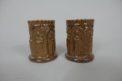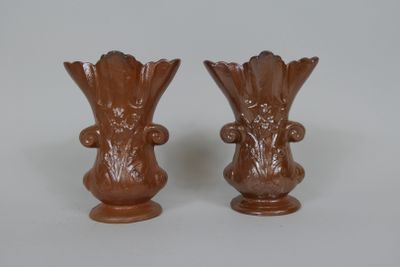 Paire de porte-allumettes en grès vernissé brun à décor de V…