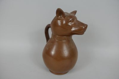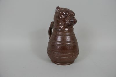 Pichet zoomorphe en grès du Beauvaisis à tête de Bouledogue.