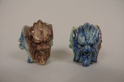 Paire de porte-allumettes en barbotine polychrome à décor de…