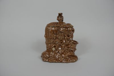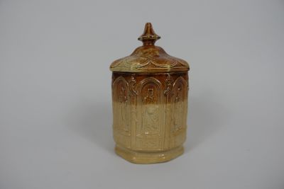 Pot à tabac « Aux apôtres » en grès à glaçure brun beige ; d…