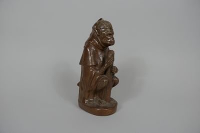 Pichet « Singe habillé en moine » en grès salé brun du Beauv…